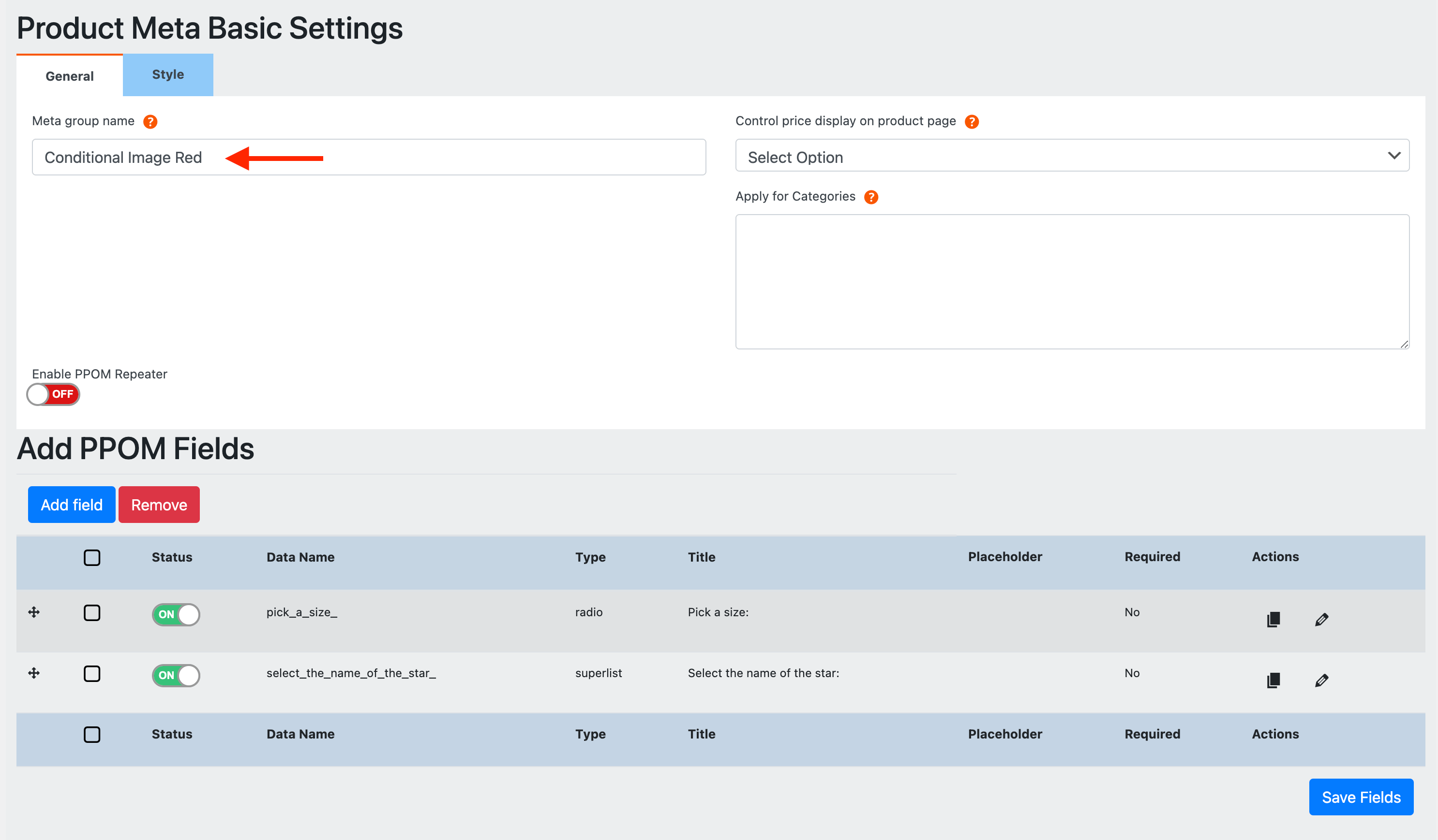 1 Navigate to WooCommerce > PPOM Fields, and add a new field group.