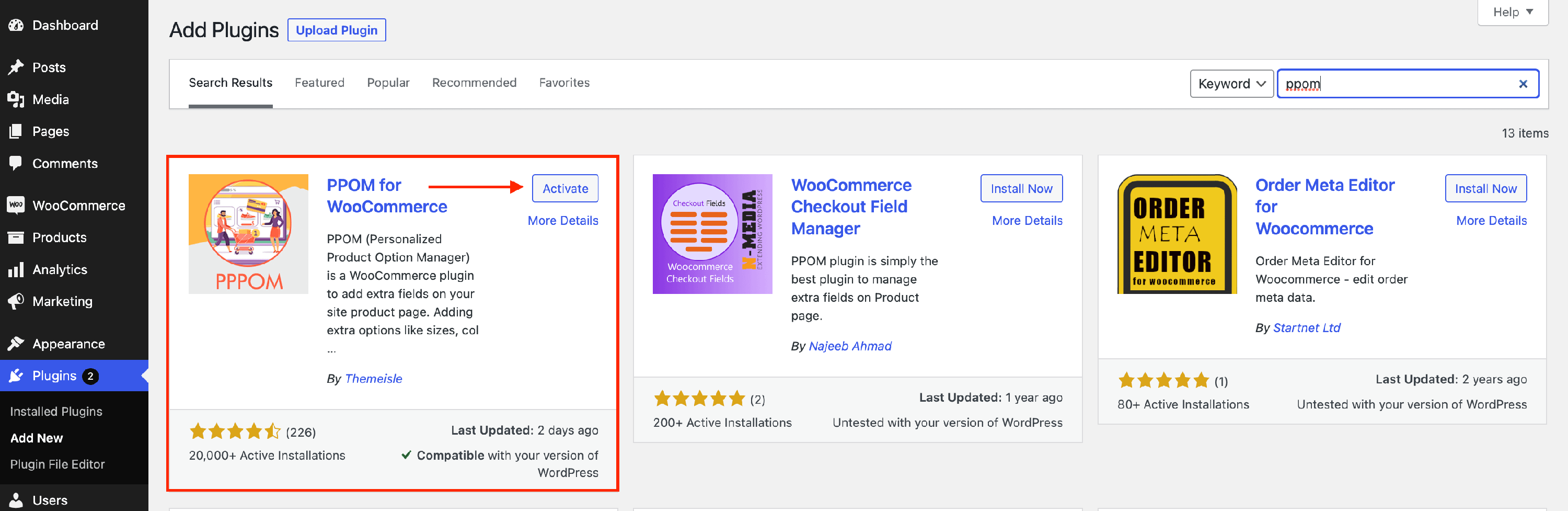 3 Navigate to Plugins > Add new and install the PPOM premium version, as a normal plugin.