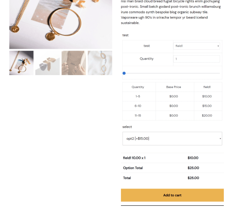 6 Check the product page with the Bulk Quantity field and you should see the base price included again.