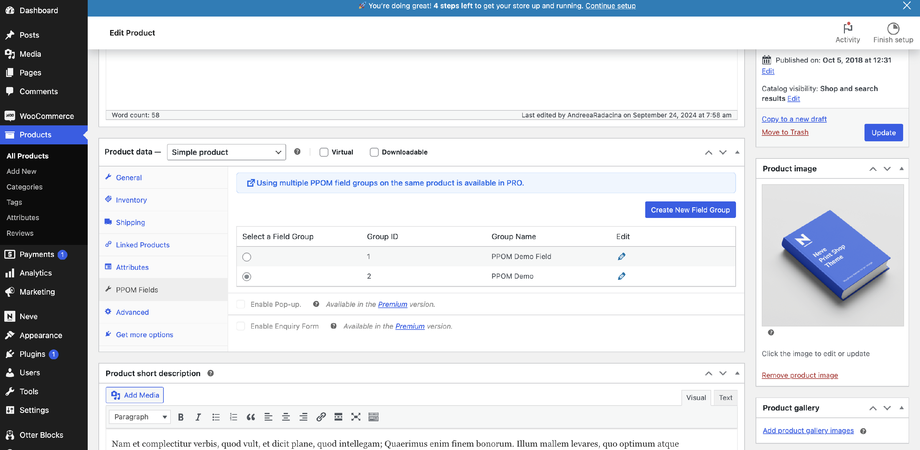 1 Navigate to the Dashboard > WooCommerce > PPOM fields.