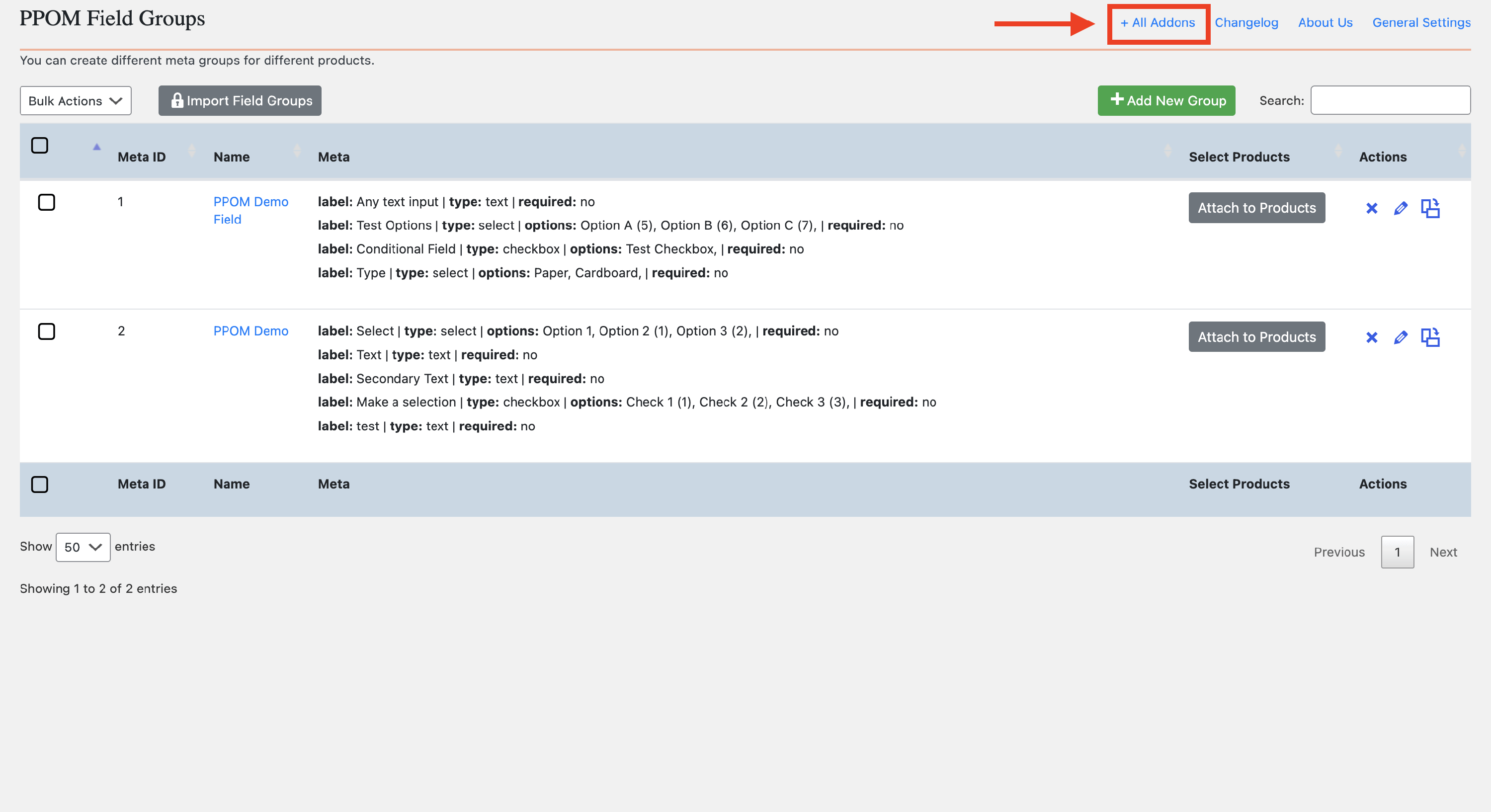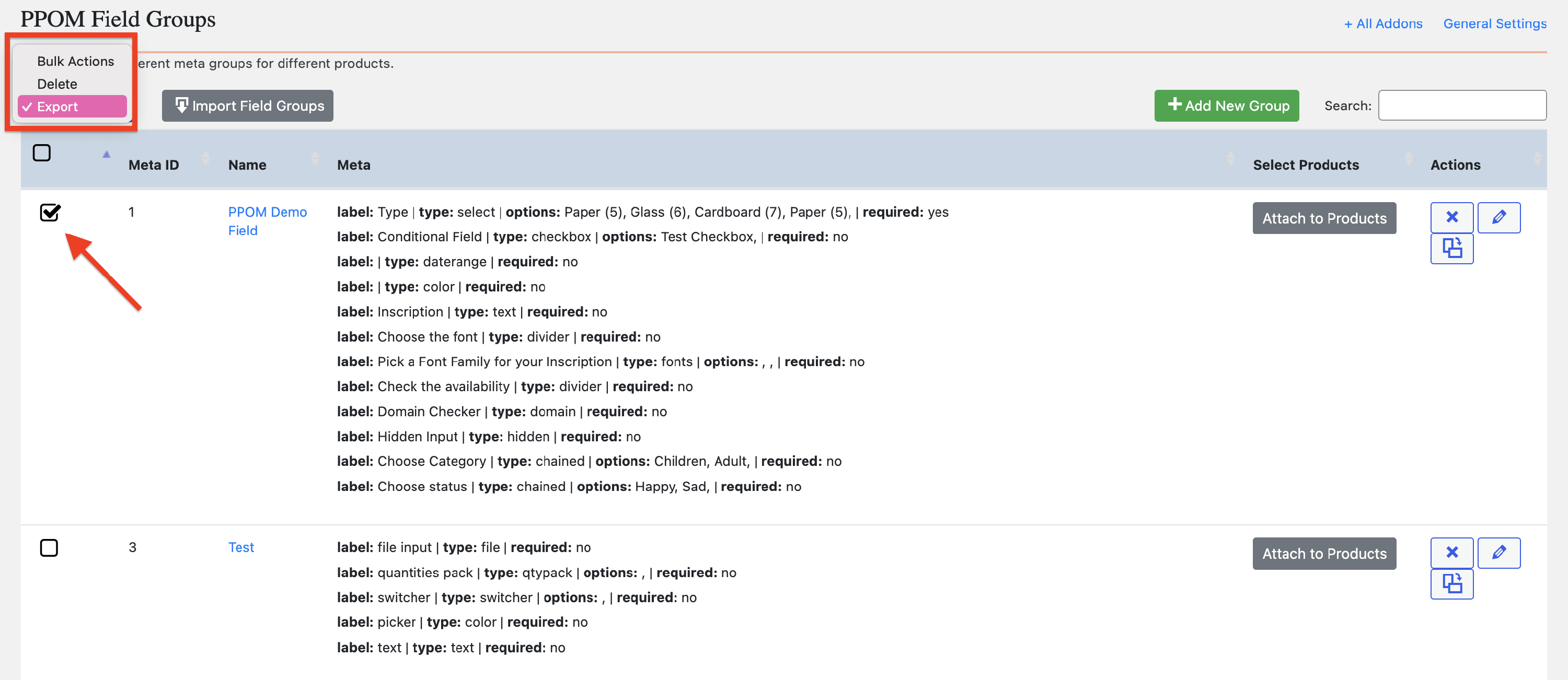 Attach meta groups to products