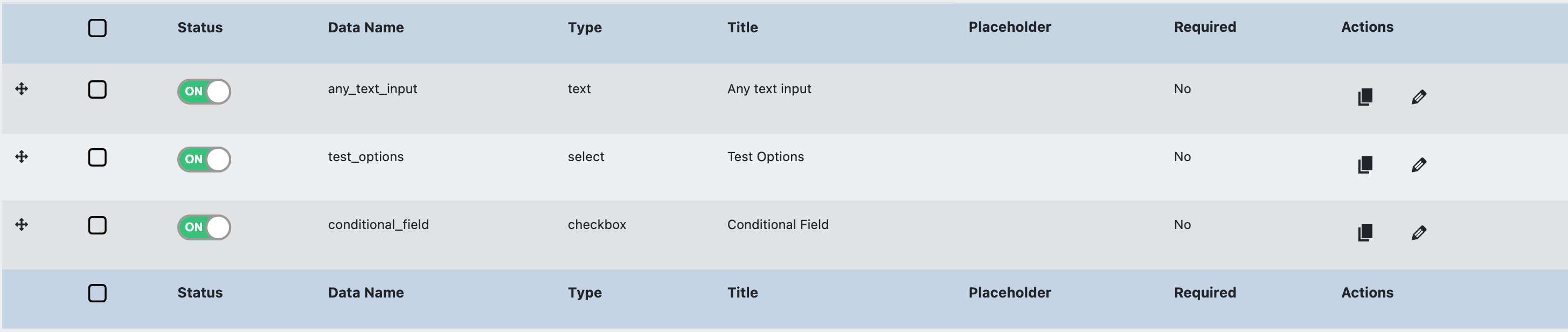 They can be added by clicking on the Add field button, duplicated by clicking on the 📑 icon, and edited by clicking on the ✏️ icon. You can also turn them on and off from the product page, depending on your needs.