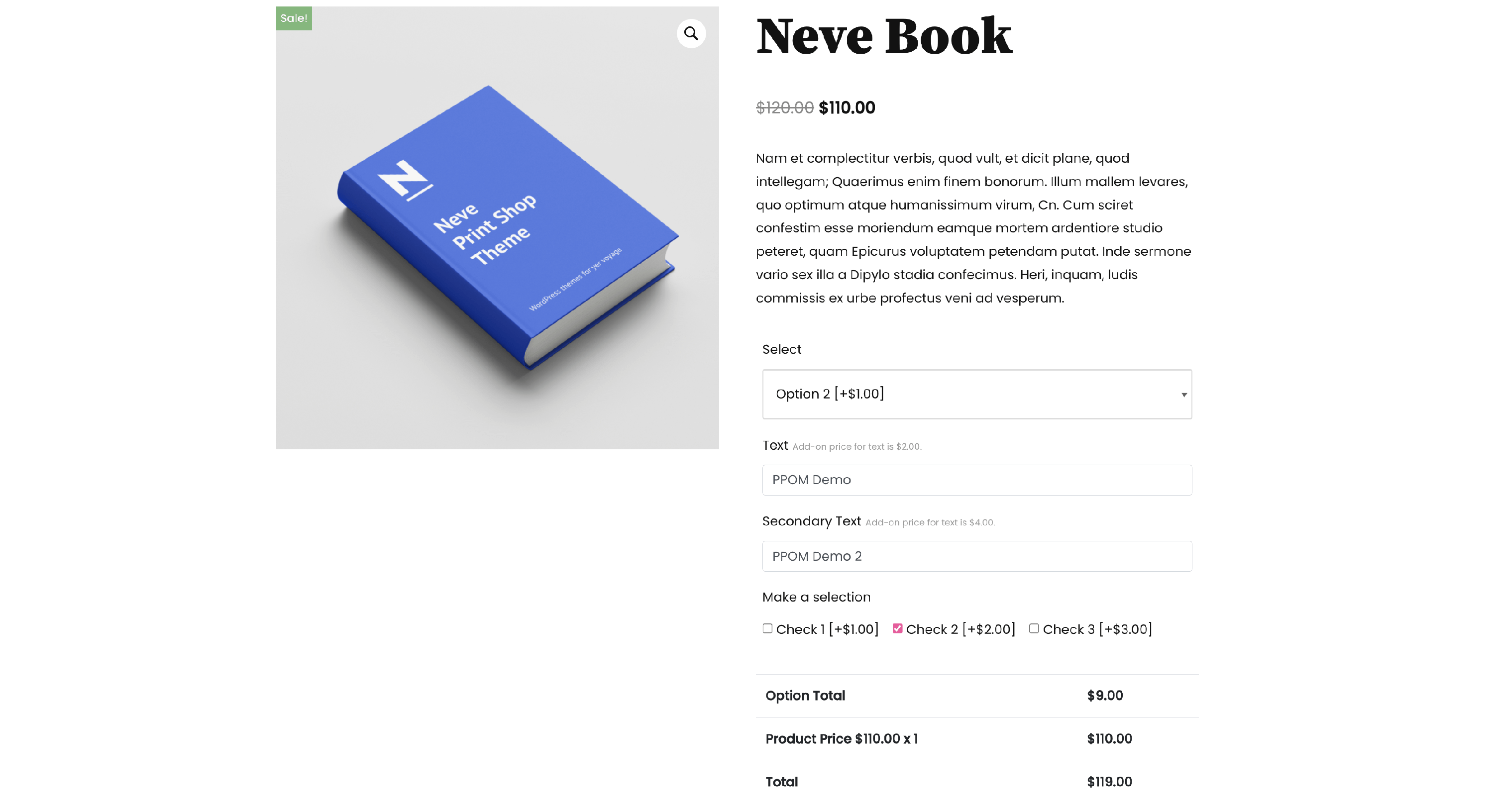 - Show only Option’s Total - as the name suggests, the client will see only the options' total; this is best if you have a long list of options and you want them to see the options' total and the product price separately.