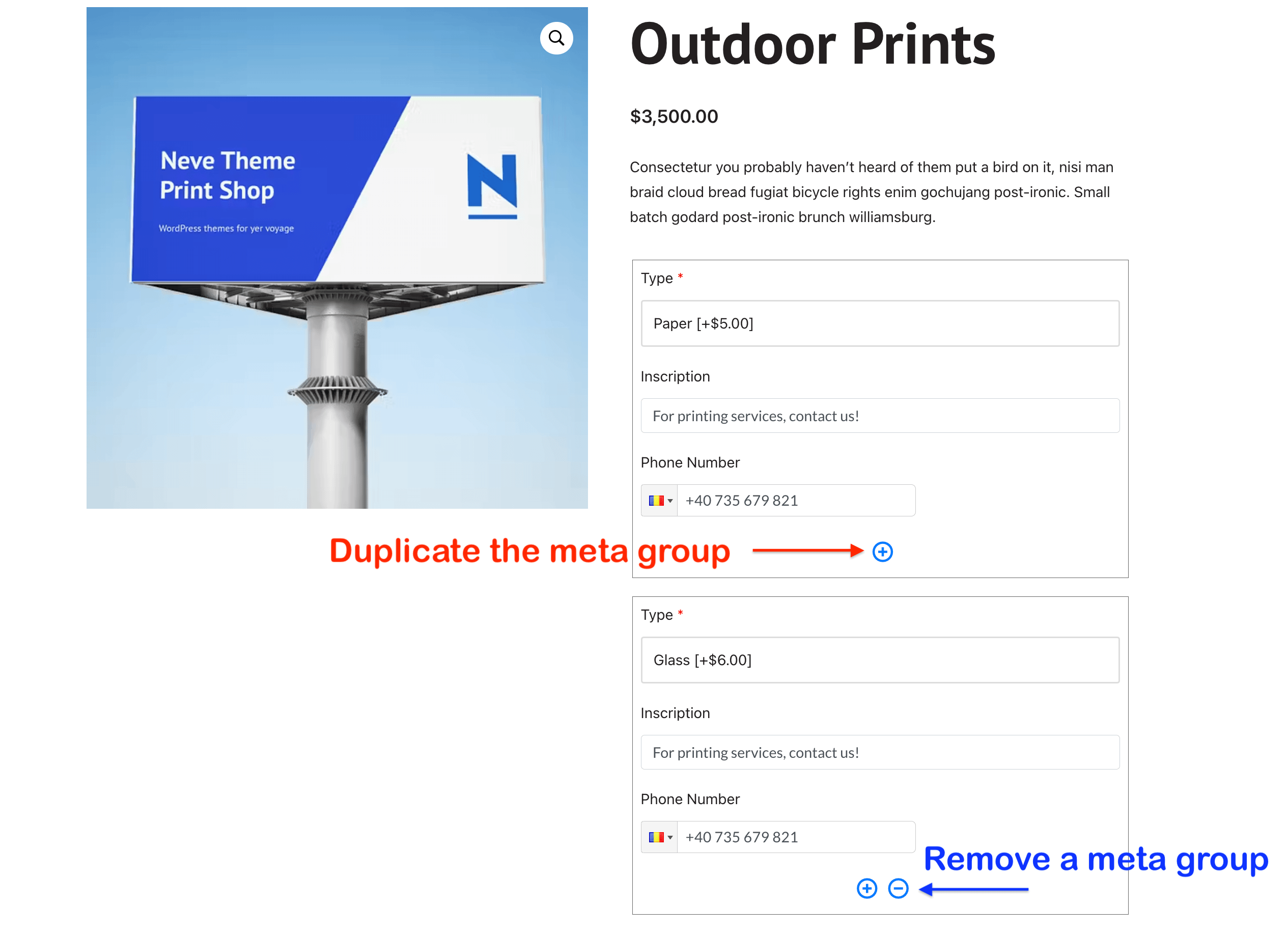 The premium version of the plugin allows you to set multiple meta groups for a single product, personalizing your store's products.