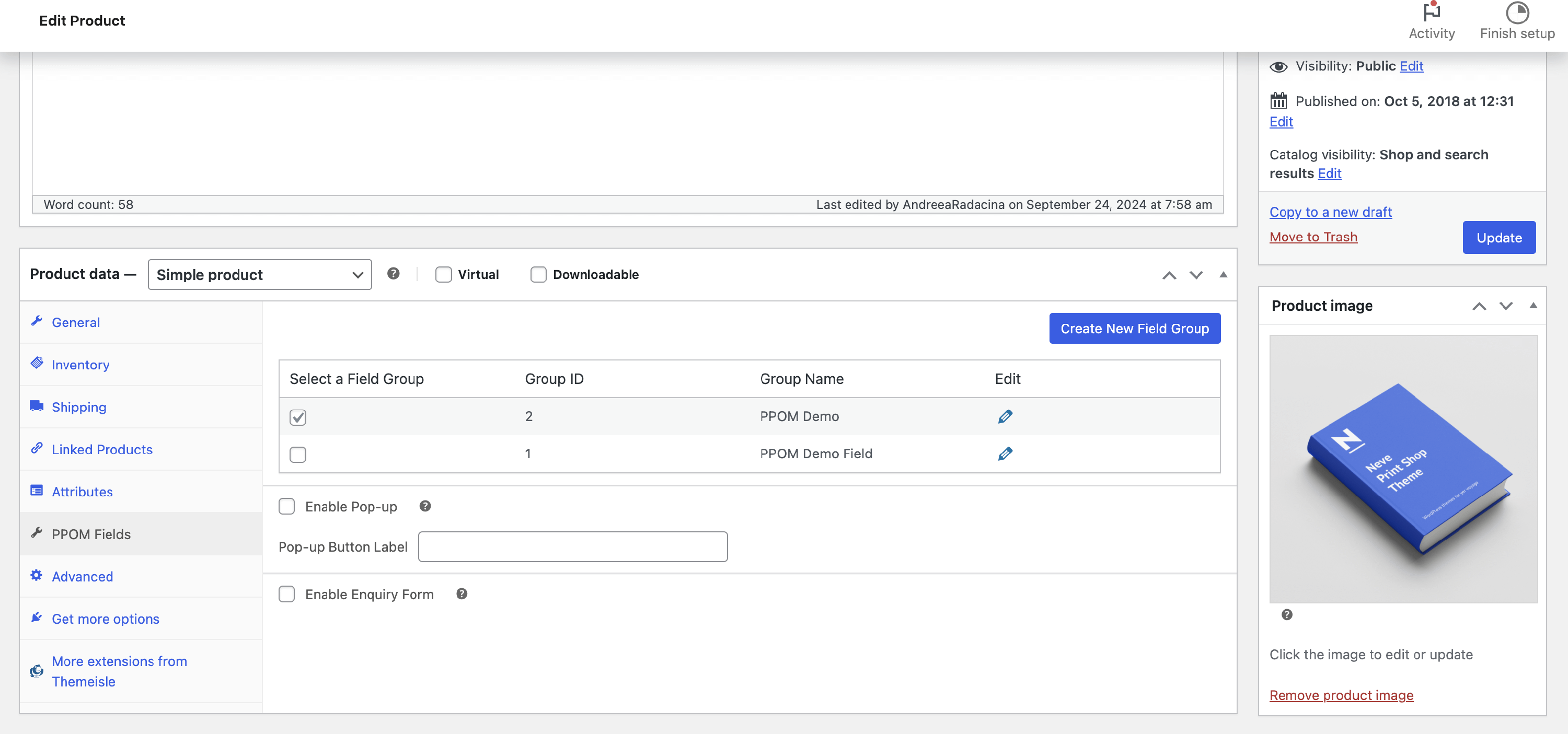- Fields Popup - this popup displays PPOM meta fields and is accessible by clicking a button on the product page - details here.