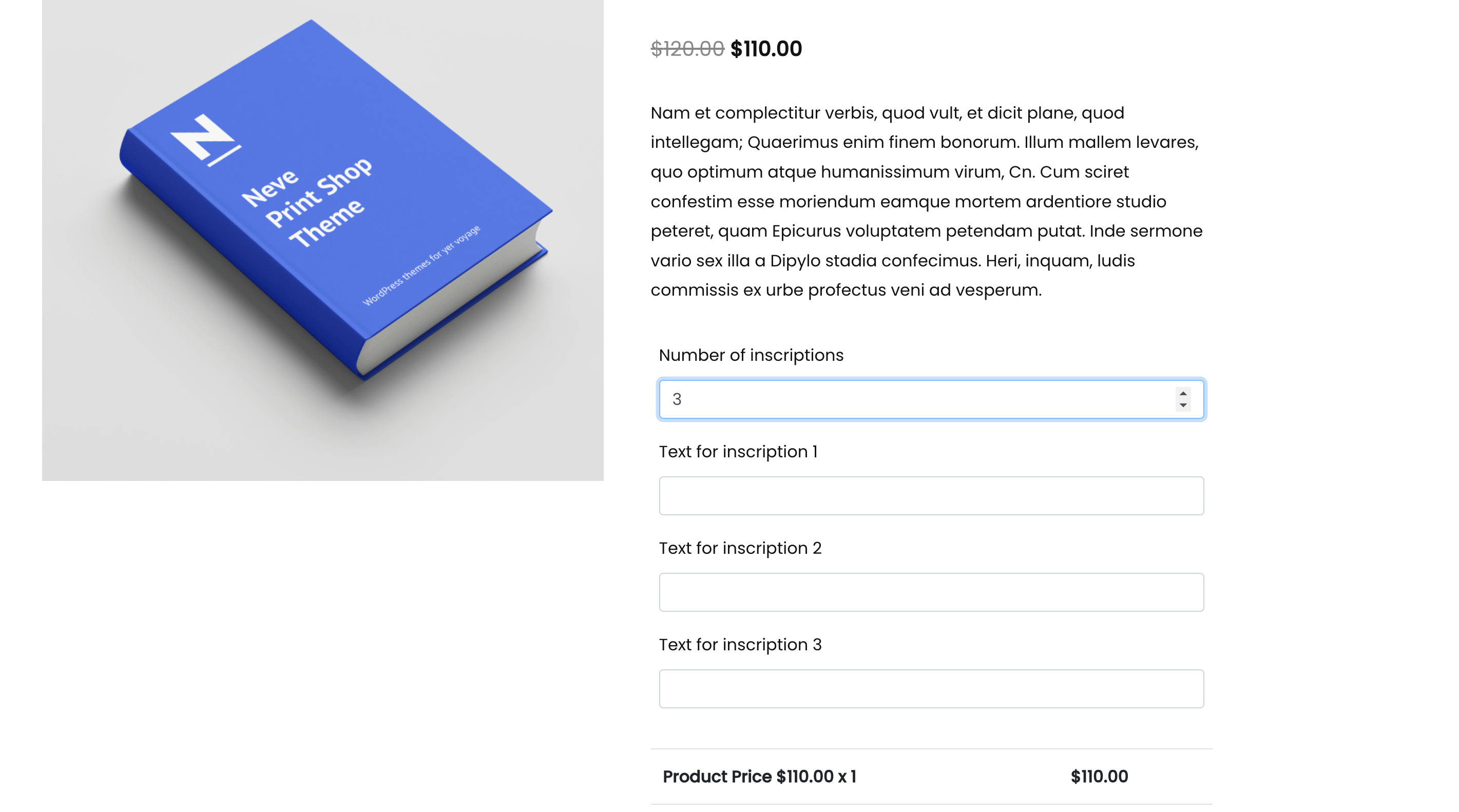 We have acquired 1 Paper type and 2 Cardboard type, so 3 inscription fields appeared, so that each product can have its own inscription: