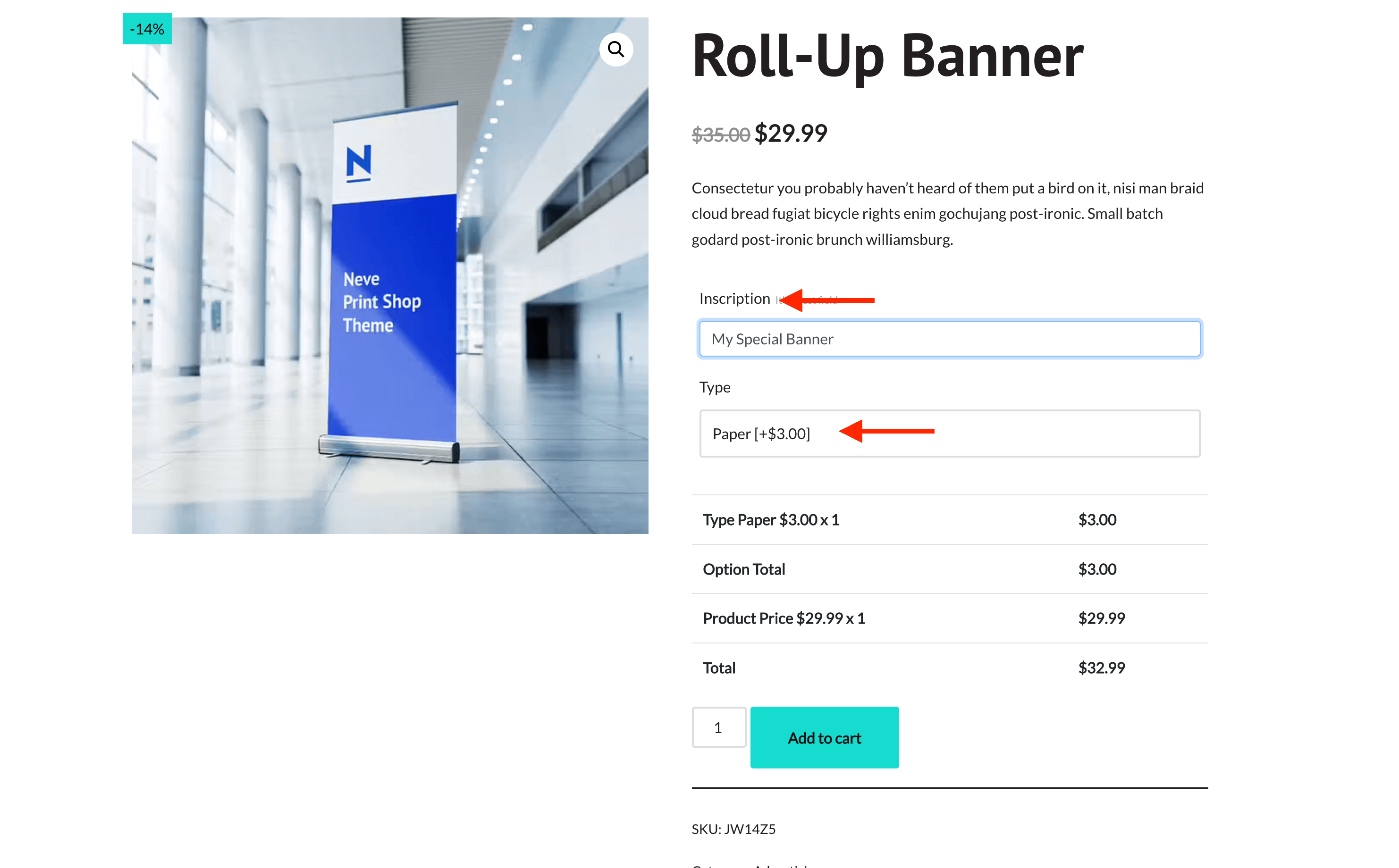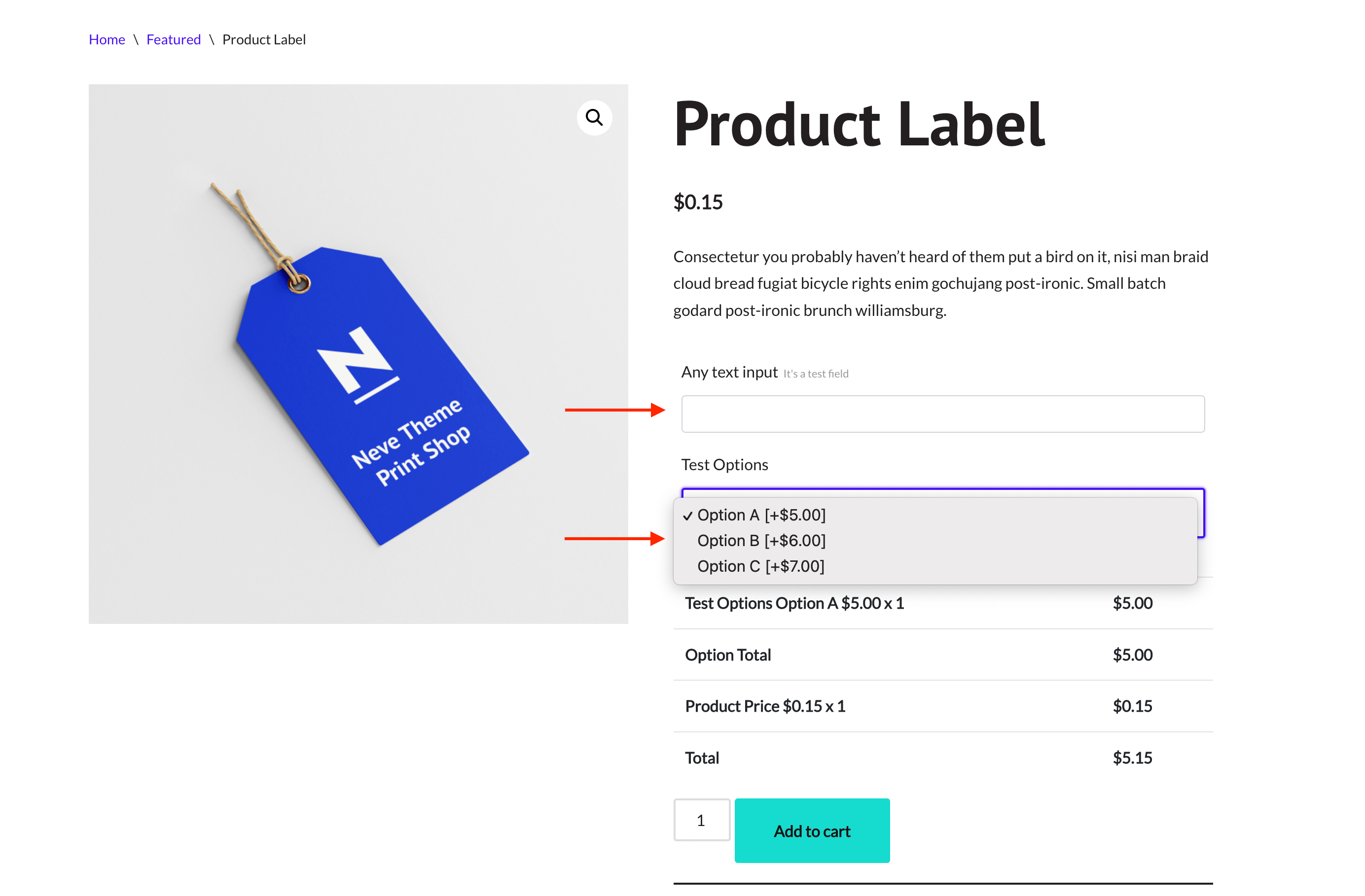 We recommend using the following two options when you use options with price. The client will love to see the actual price of the product after adding options.
