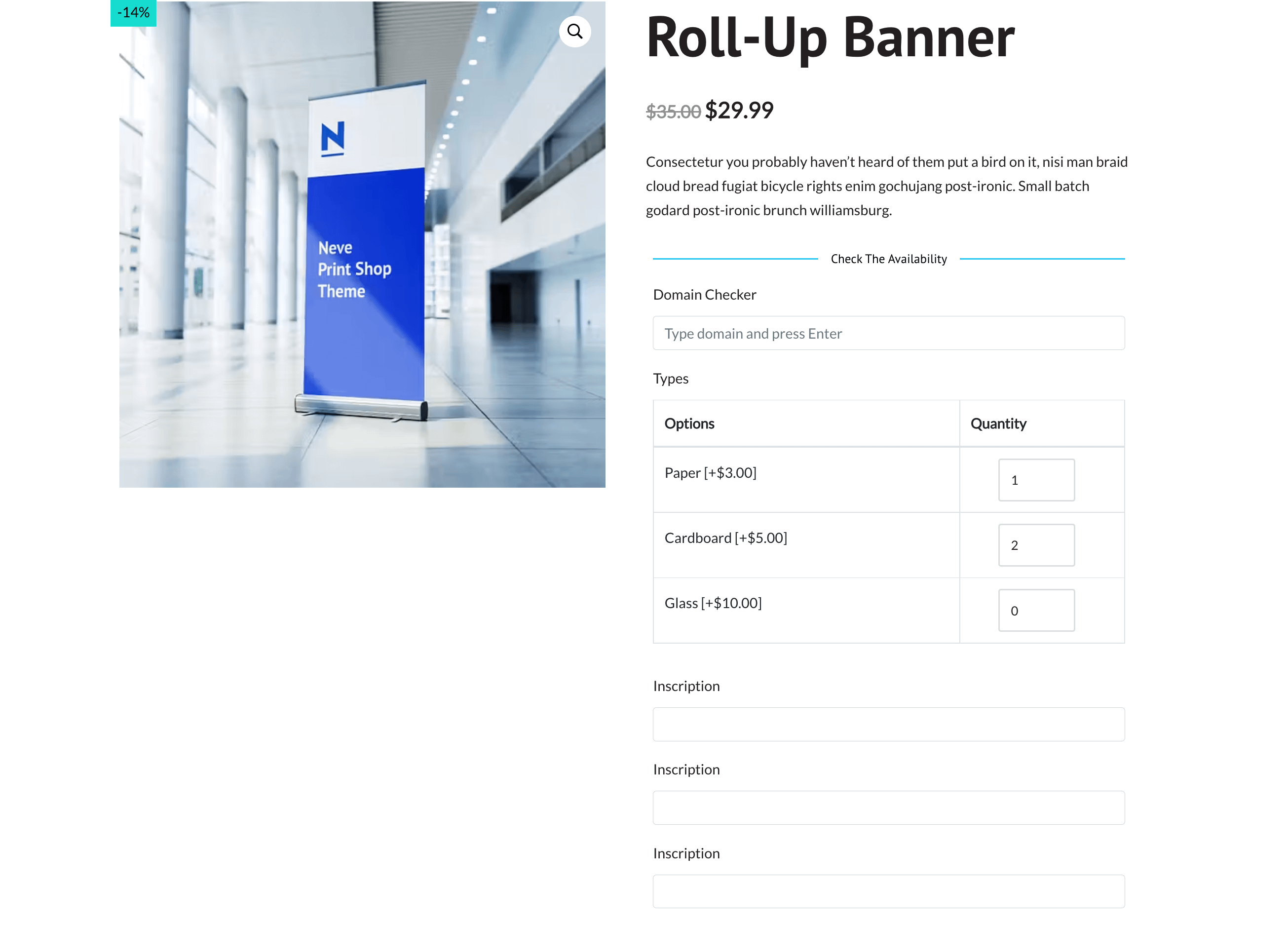 You can choose to show or hide fields if all or any of the restrictions are applied. In the example above, we have chosen to provide inscription services only for paper and cardboard, so we have added conditions on the text meta field and mentioned the rules.