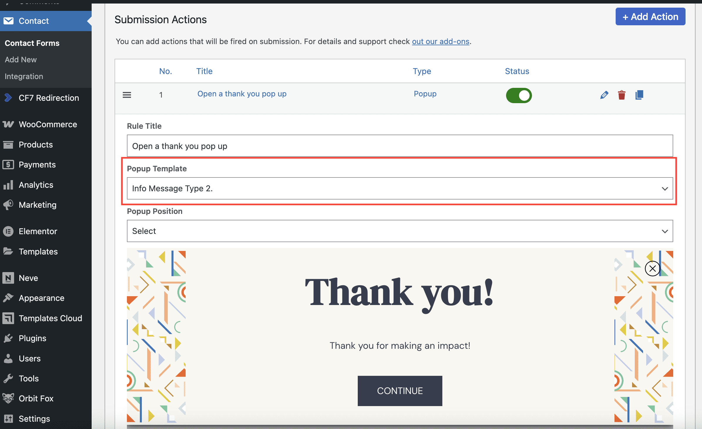 Using Contact Form 7 Thank You Popup