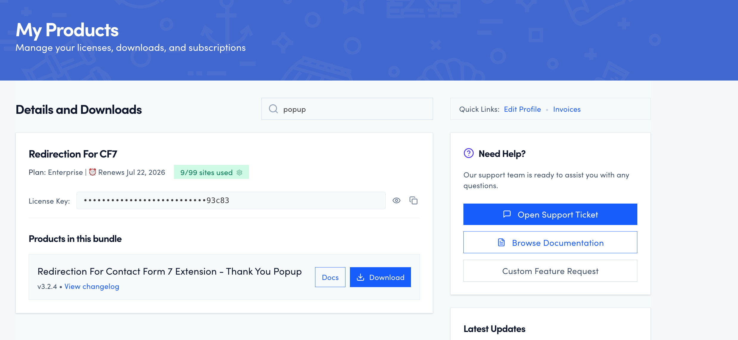 - Download the Redirection For Contact Form 7 Extension - Thank You Popup plugin from your purchase history.