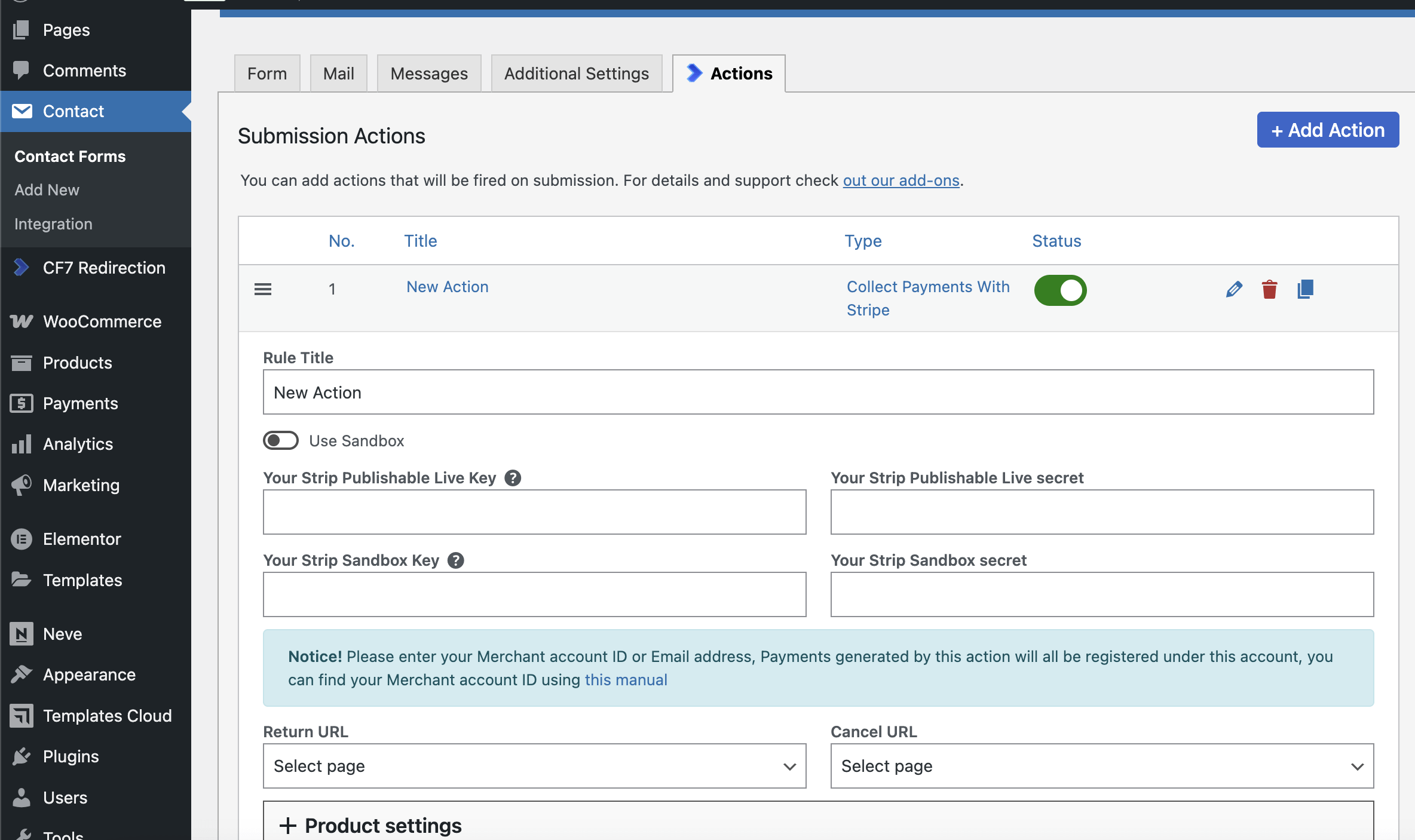 The Stripe Integration feature from the Redirection for Contact Form 7 (available from the Marketer plan) enables users to process credit card payments seamlessly with a complete checkout flow.