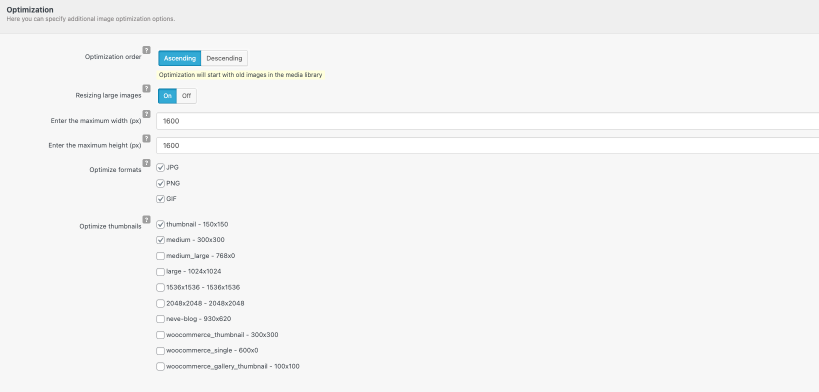 Select which image formats should be optimized: