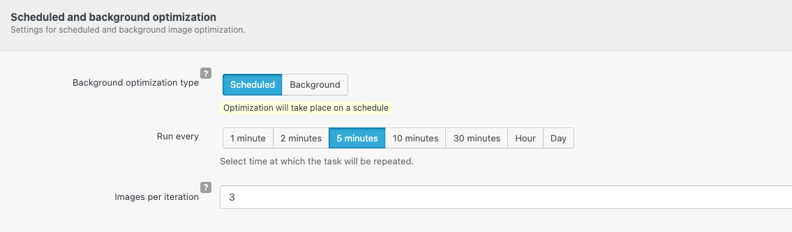 Lower values reduce server load. Higher values speed up optimization.