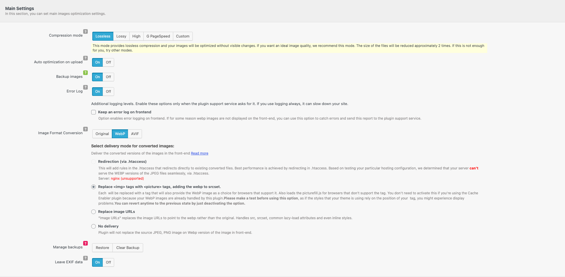 When enabled, original images are backed up before optimization.