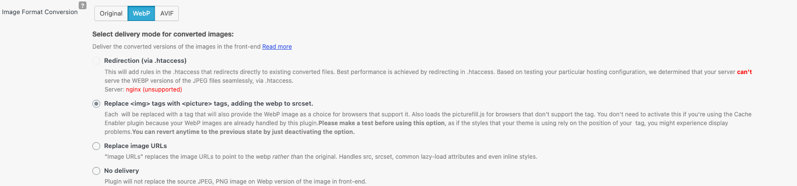 Defines how converted images are served on the frontend.