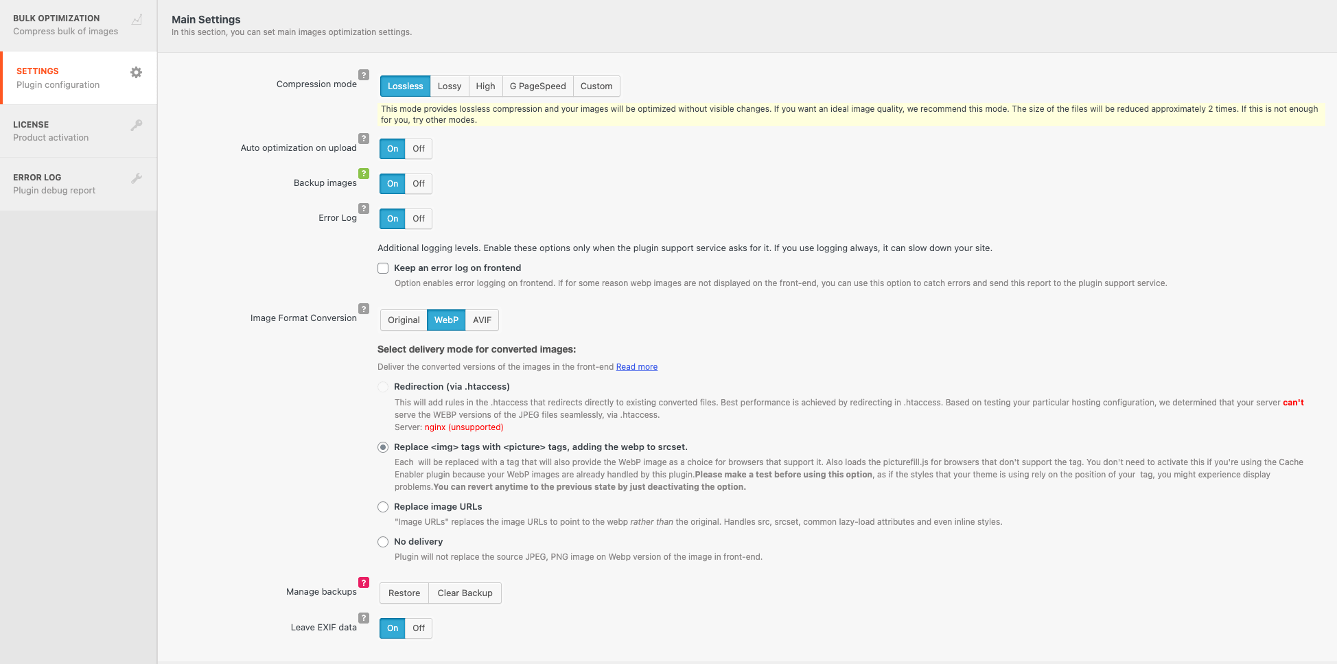 Step 1: Configure WebP settings