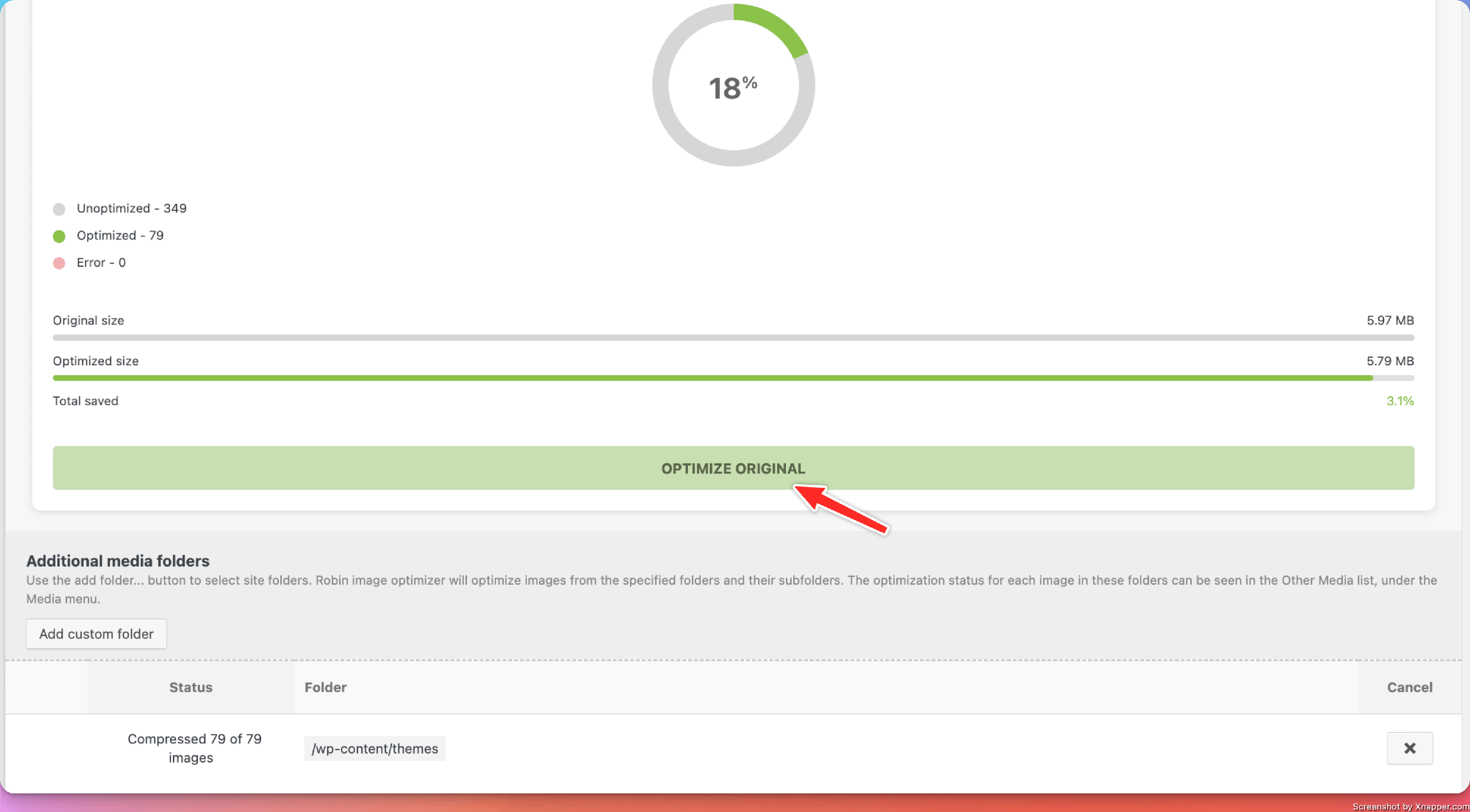 Once the custom folder is selected, click "Optimize original" to start the optimization process.