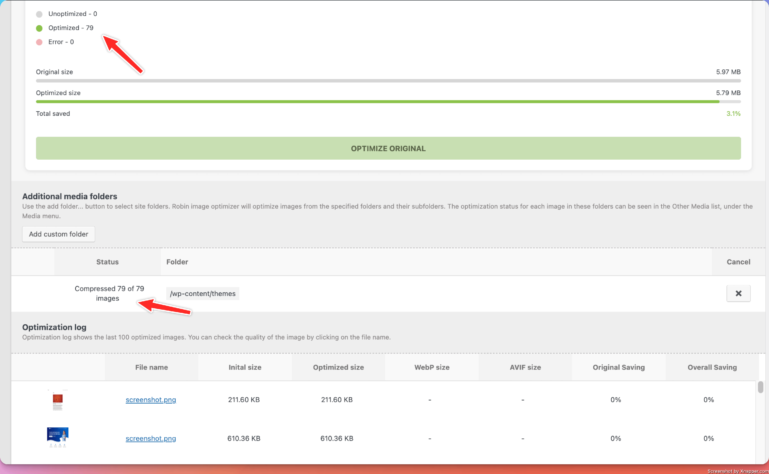 Once the optimization process is completed, you will be able to see a full report of the optimized images.