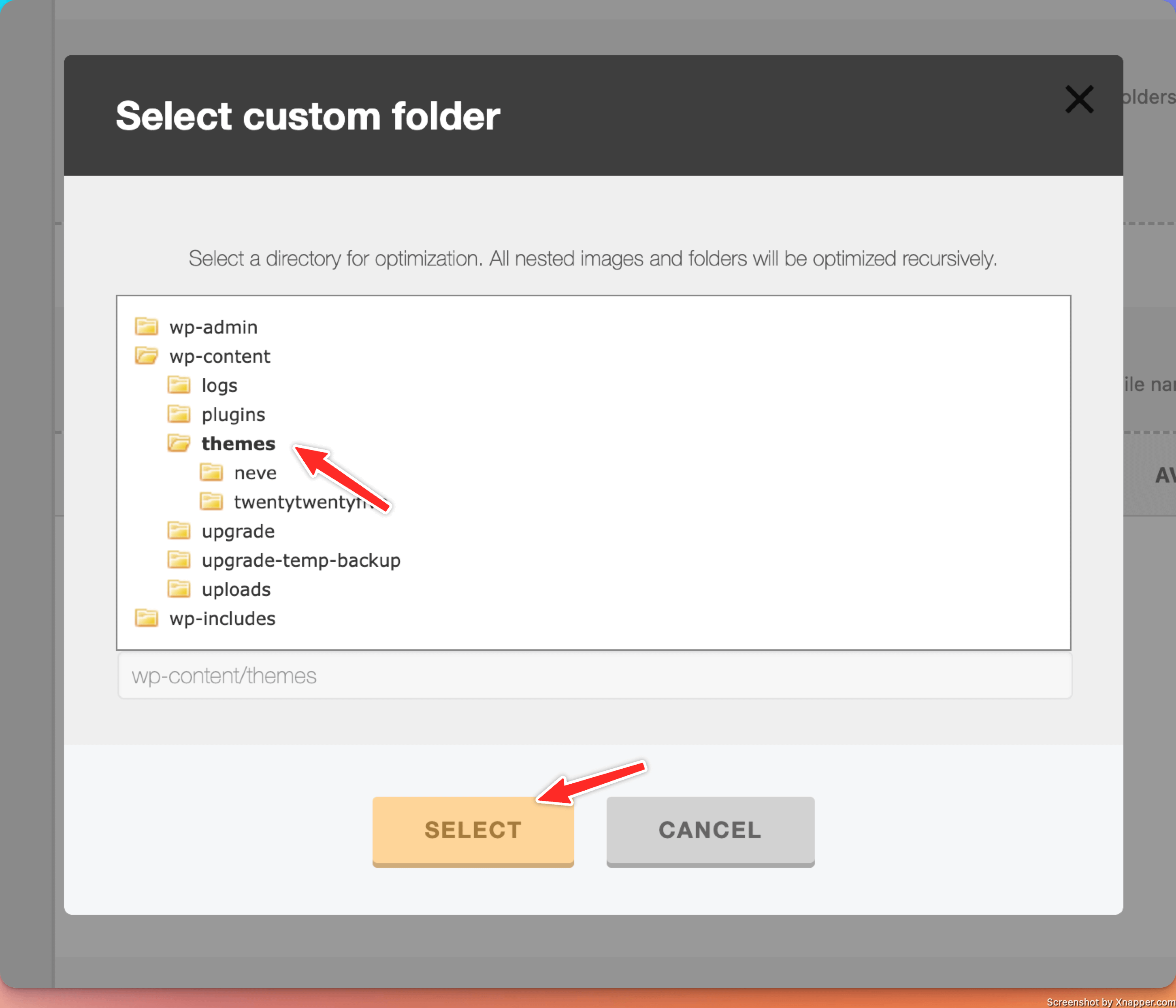 There, you need to select a dedicated folder from your site, from which you want to optimize images. ( Robin Image Optimizer will optimize images from the selected folders and their subfolders ).