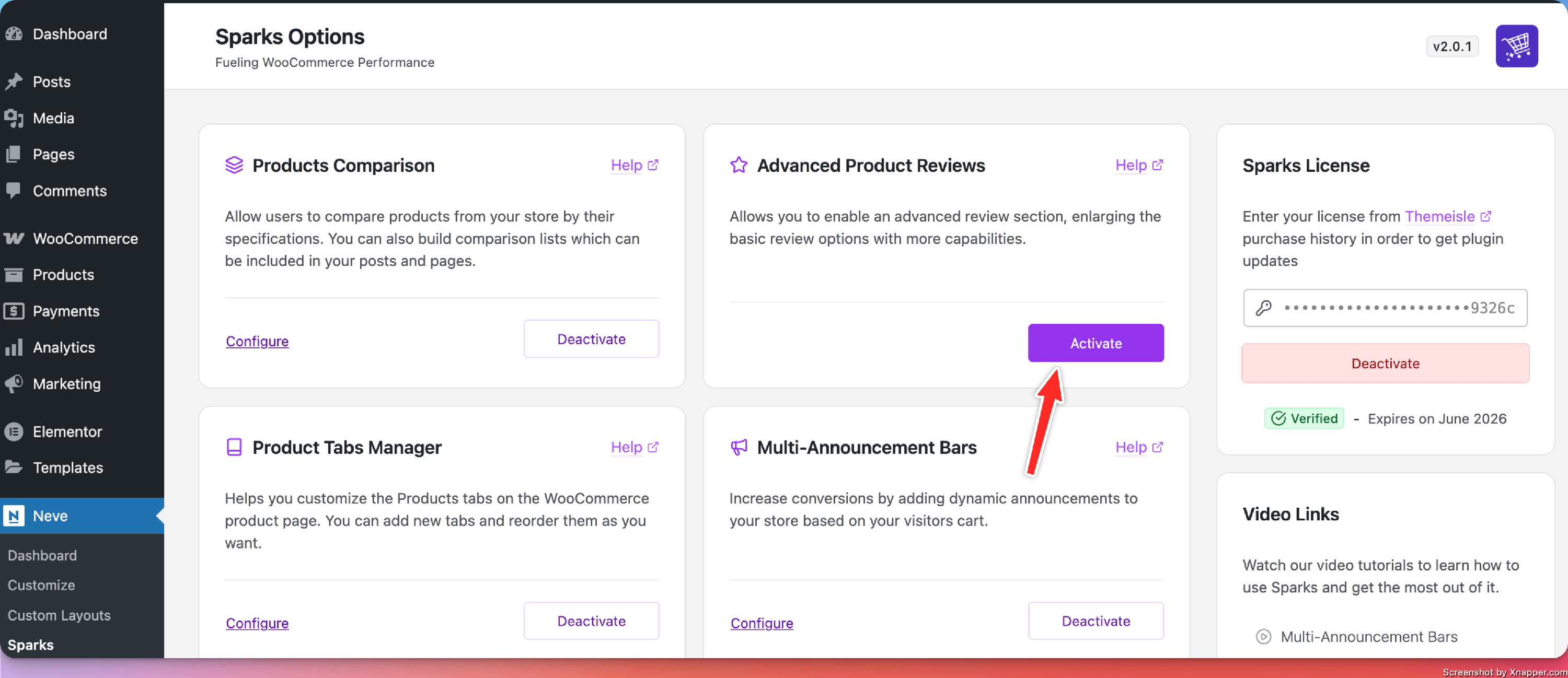 NOTE: If you are using Neve, navigate to Neve > Sparks to access Sparks's options.