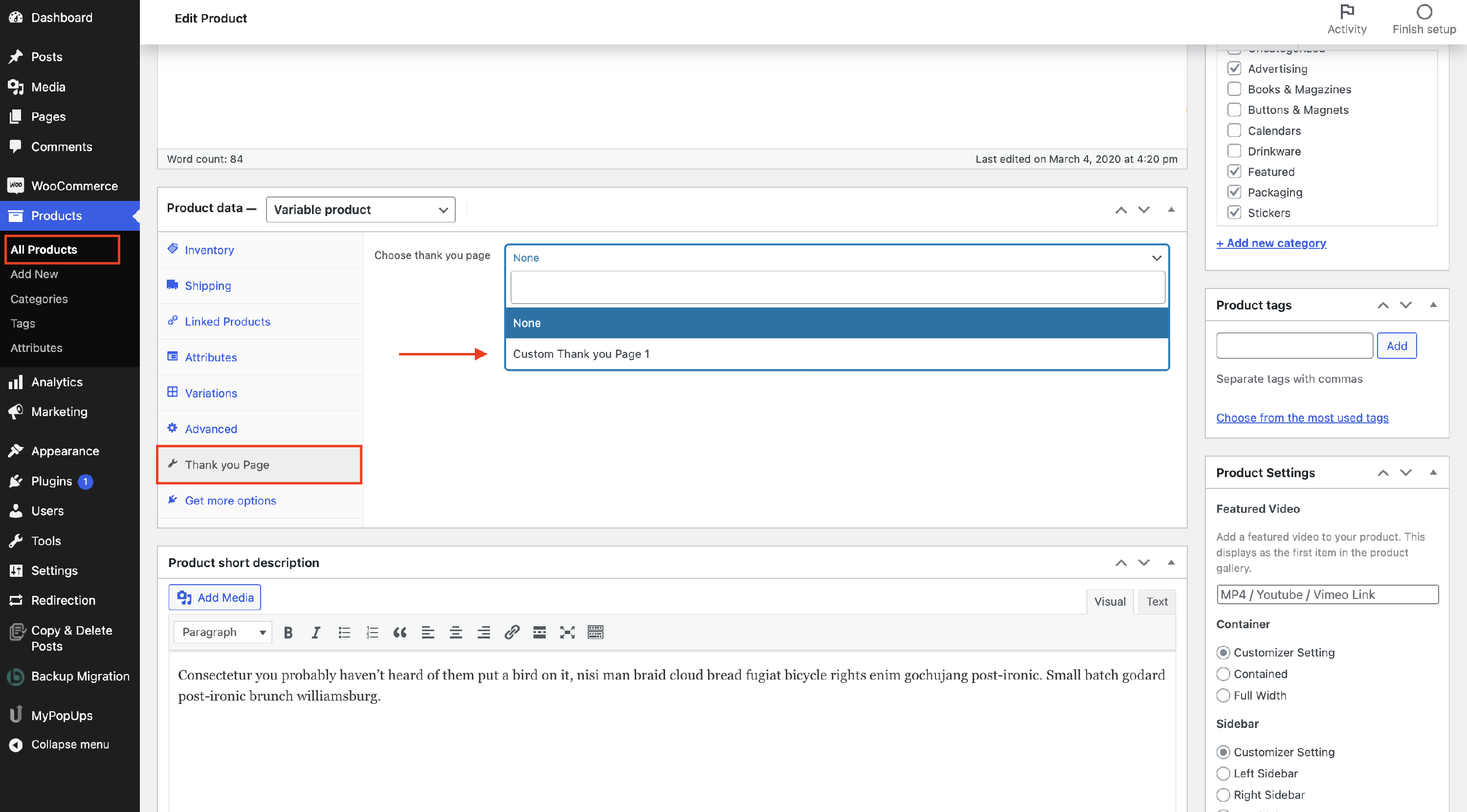 The interesting part of this feature is that you can have multiple Thank You Pages and restrict them so they will be displayed only for certain products.