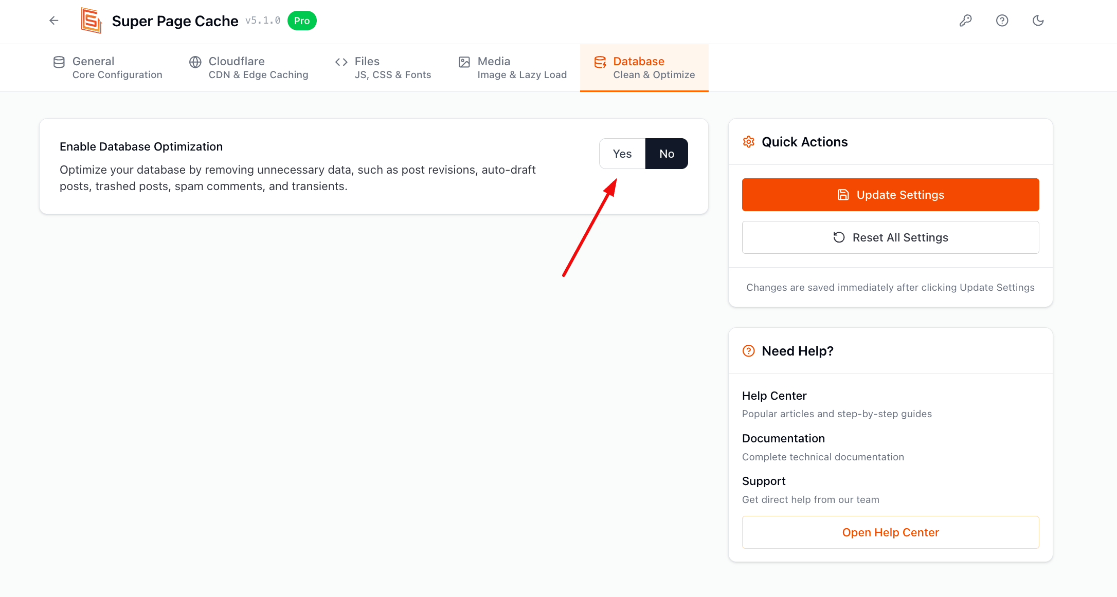 - Navigate to Super Page Cache → Settings → Database Optimization.