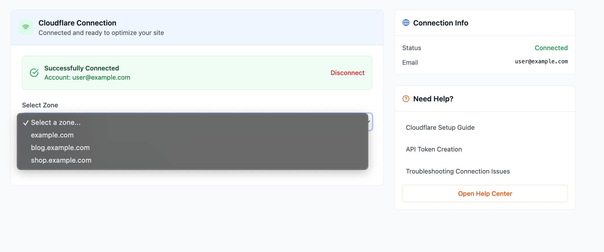 Navigate to the Cloudflare Integration tab