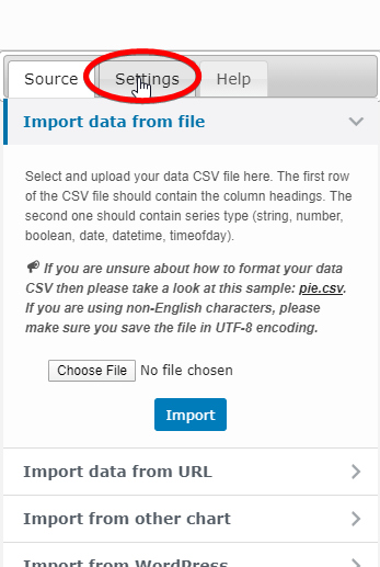 Go to Visualizer > Chart Library and edit the chart you want to customize, and click settings.