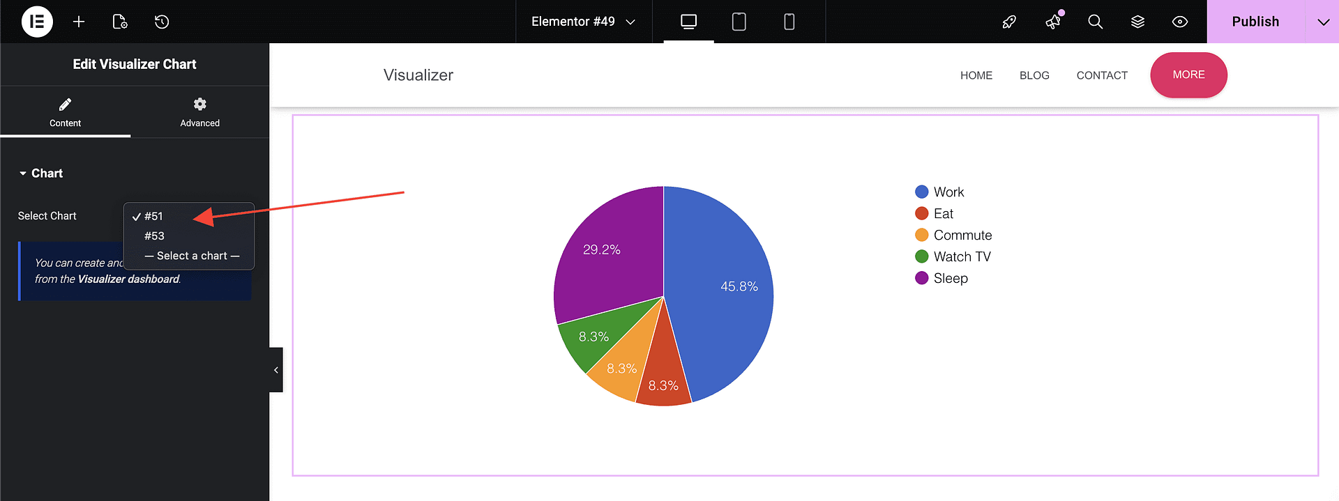 Visualizer provides a native Elementor widget that lets you embed your charts directly in the Elementor editor β no shortcode needed.