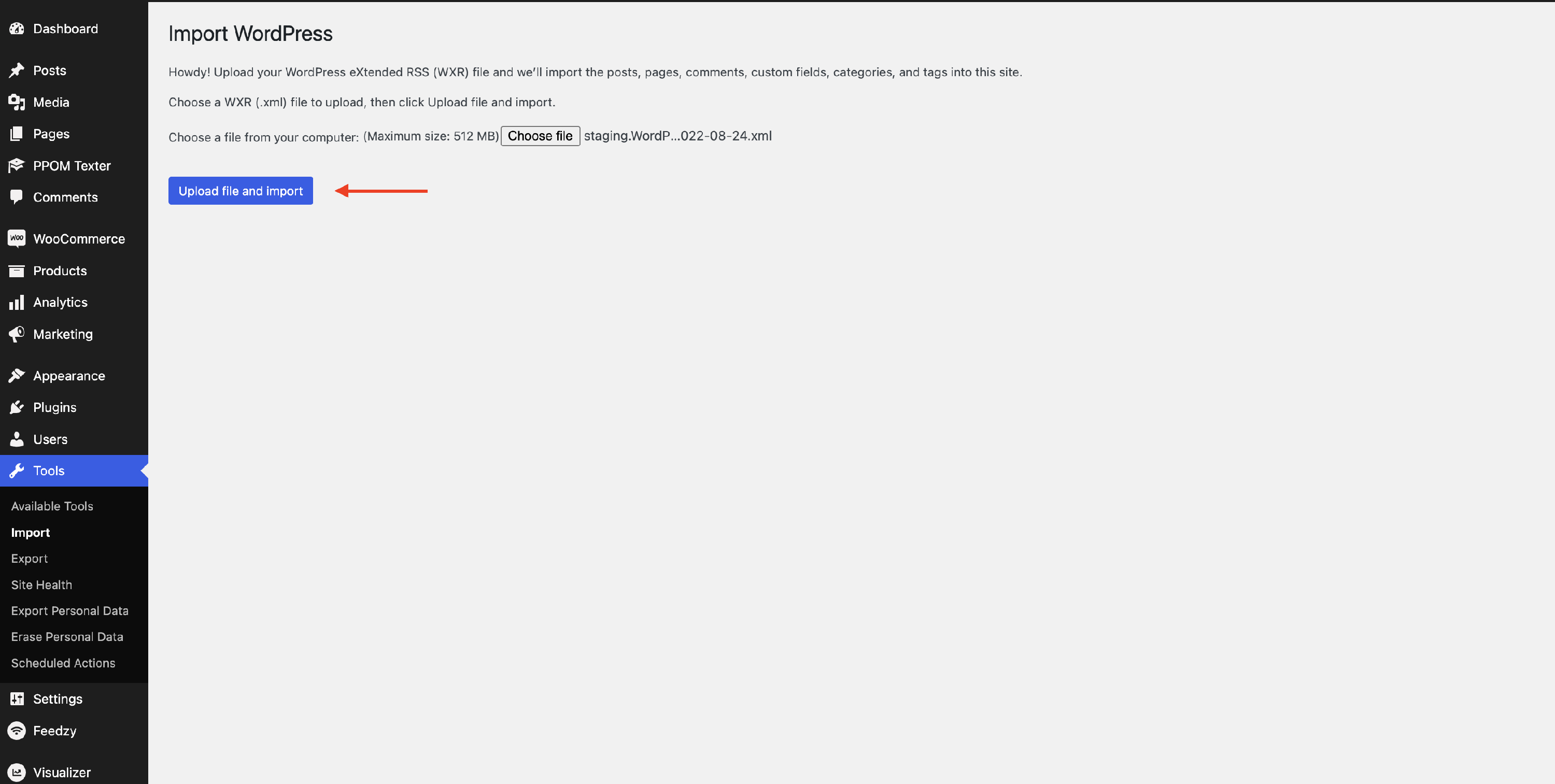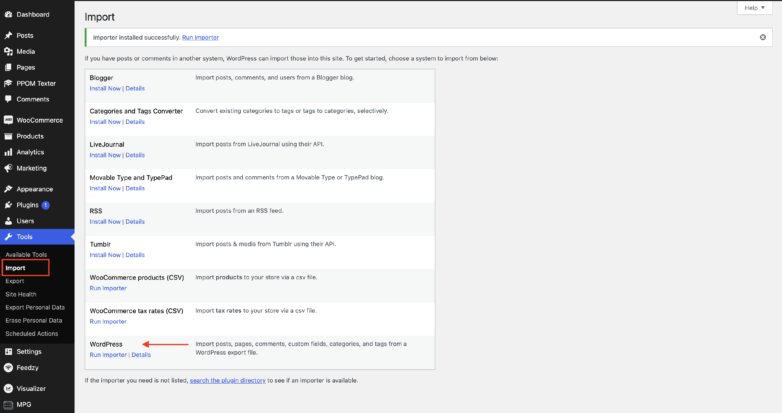 📝 Note: If WordPress importer is not installed yet, you will be asked to install it beforehand.