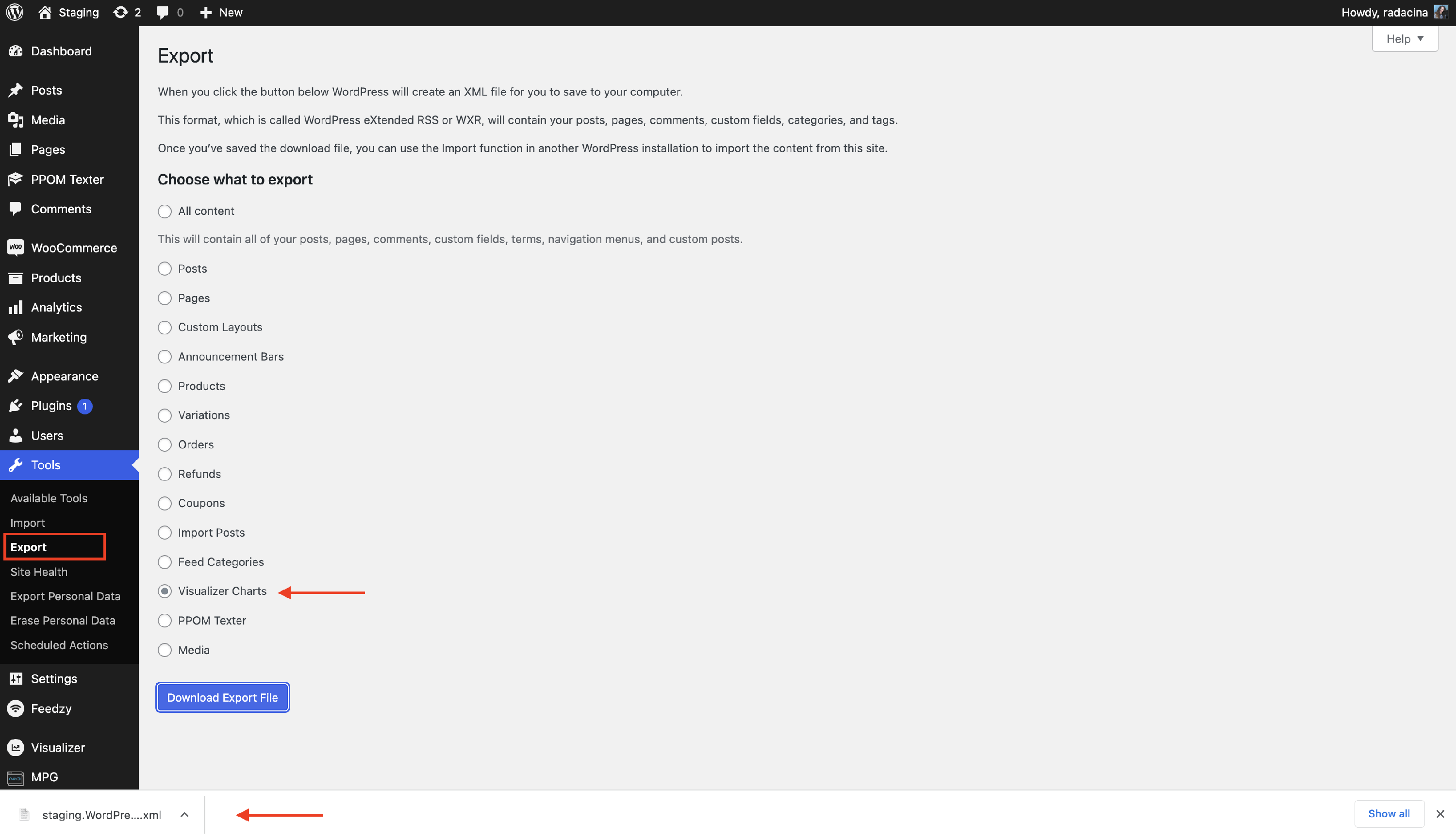 📝 Note: This documentation presents how the import / export mechanism of WordPress works for the Visualizer: Charts and Graphs data. More details about the plugin capabilities can be found here.