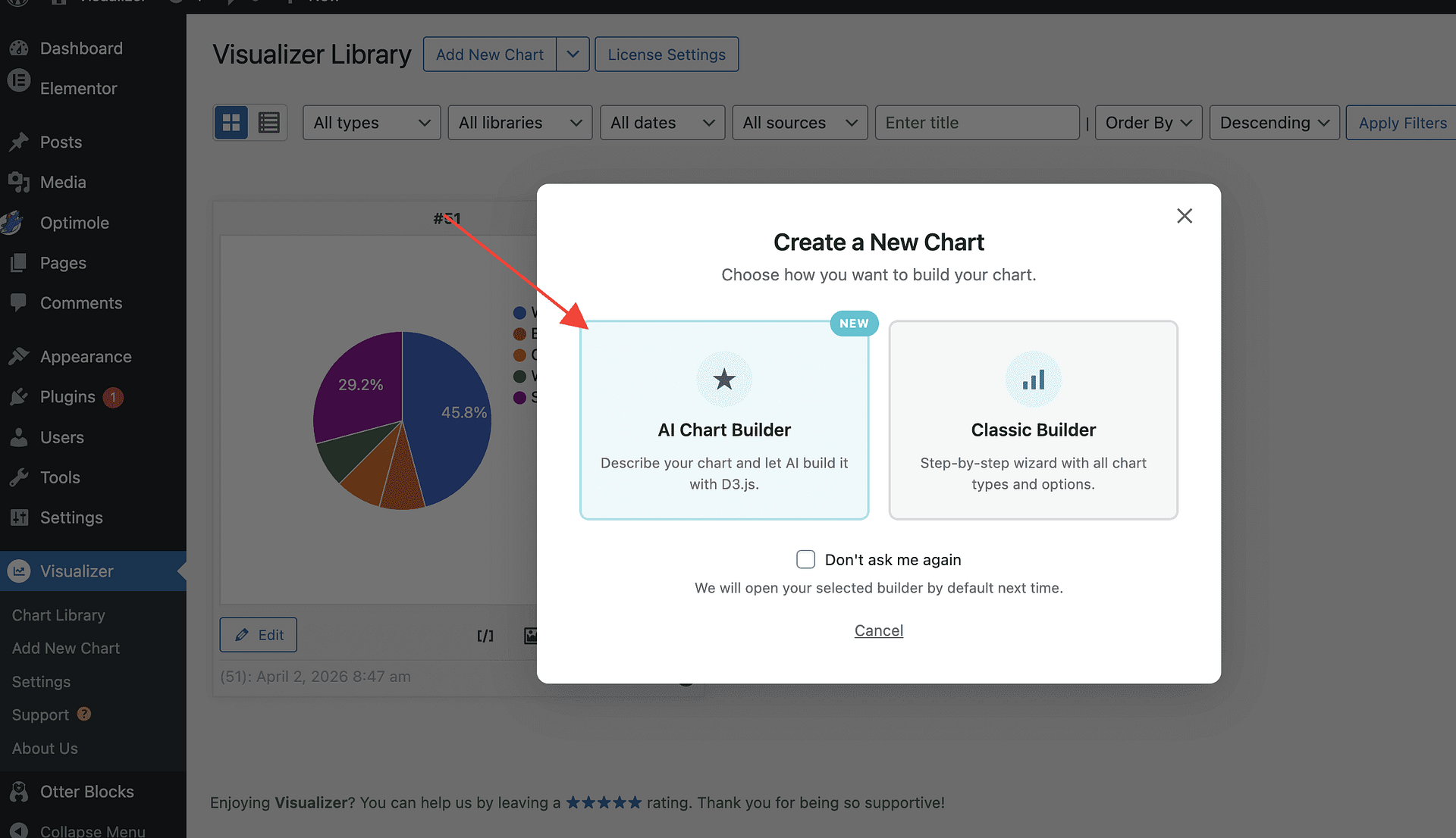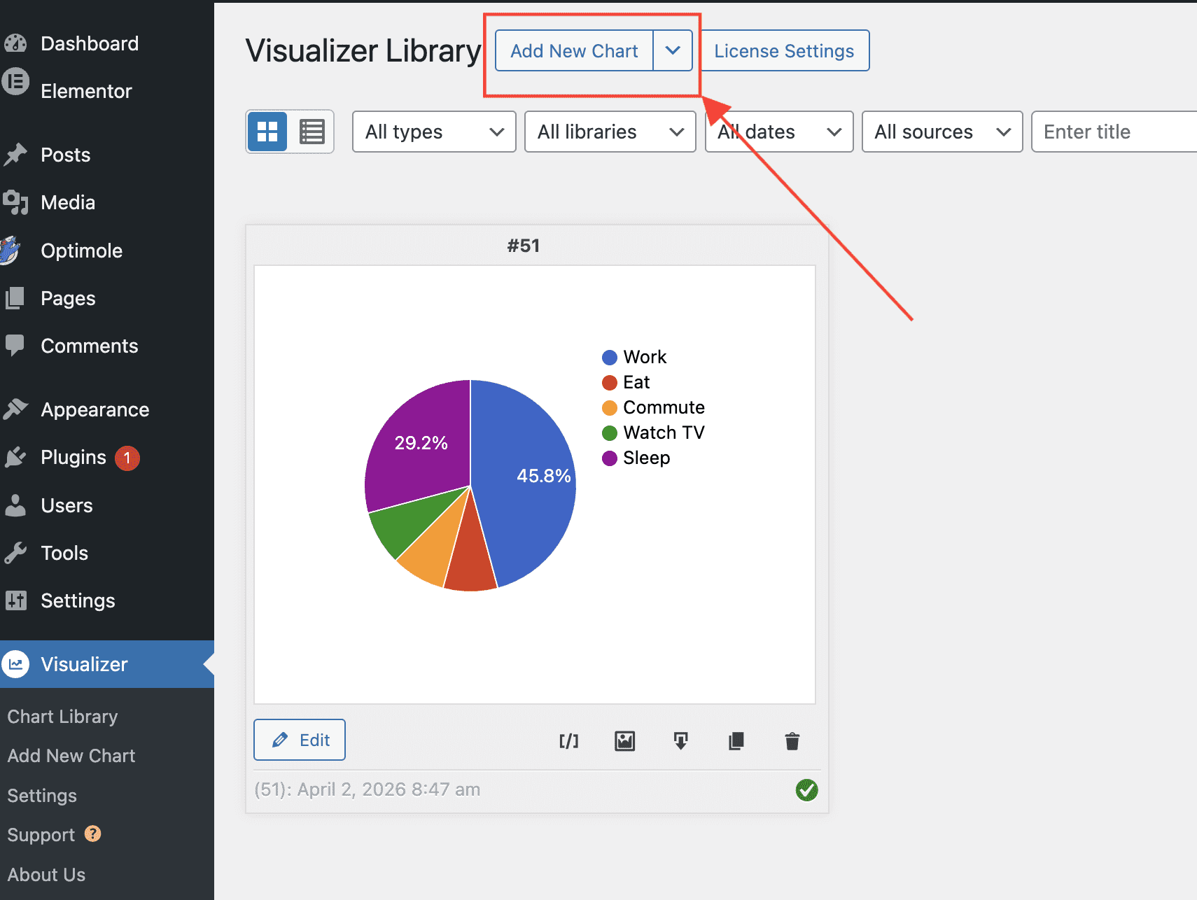 1. Navigate to Visualizer > Chart Library from your WordPress dashboard.