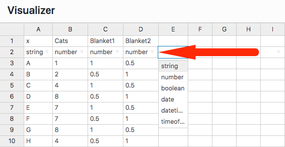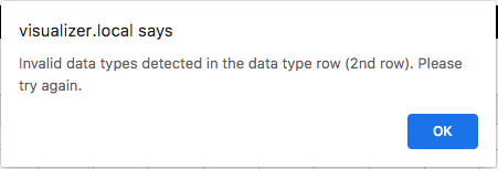 This means that on the second row of the file you have created, the columns data type needs to be specified, below is an example.