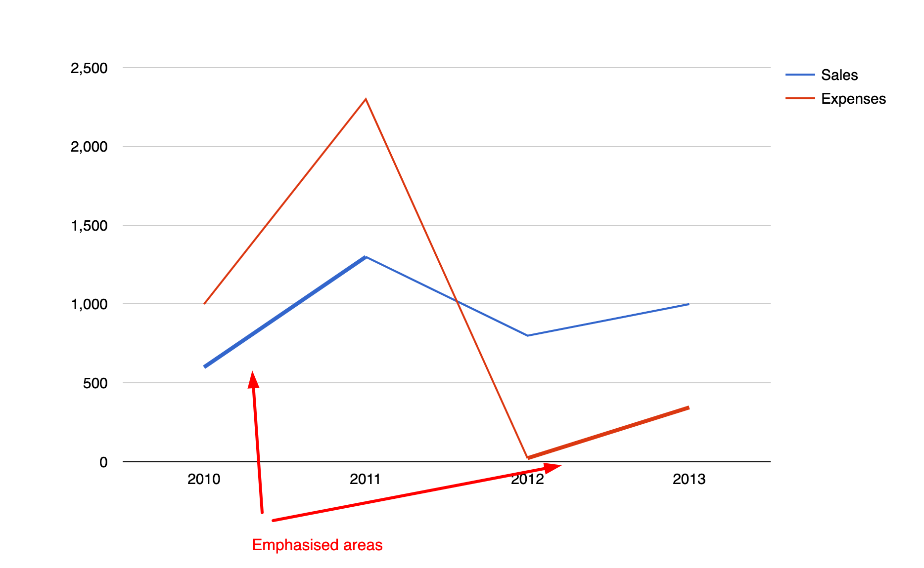 Emphasizes specified chart data points. Displayed as a thick line and/or large point.