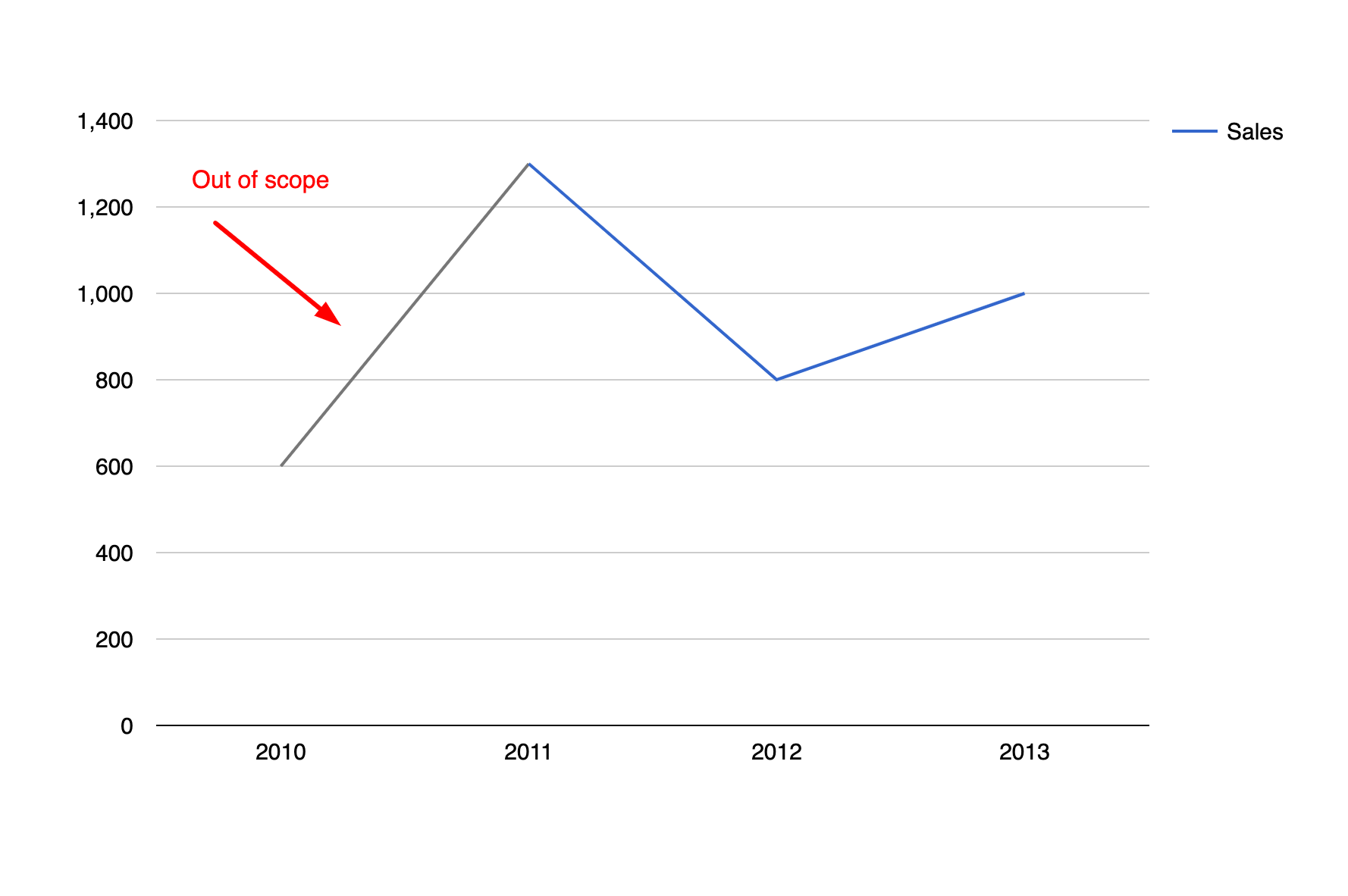 Using the scope role, we can indicate whether a point on the chart is in or out of scope. If a point is out of scope, it is visually de-emphasized.
