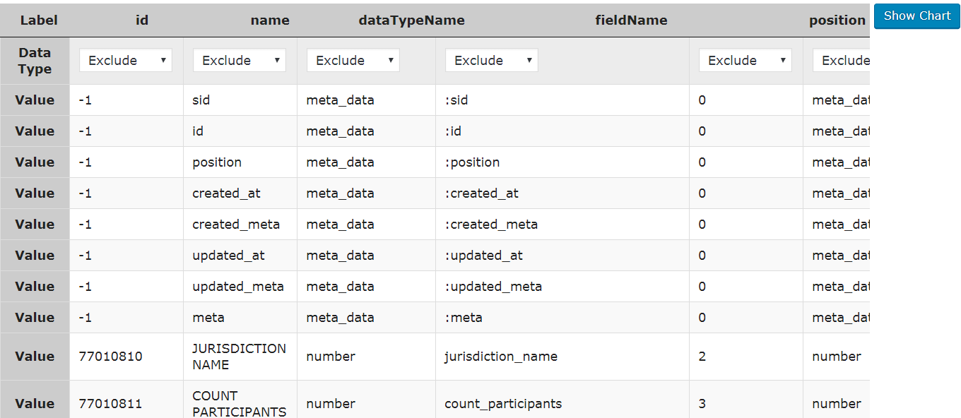 // ignore rows that have the value of "dataTypeName" as "meta_data"