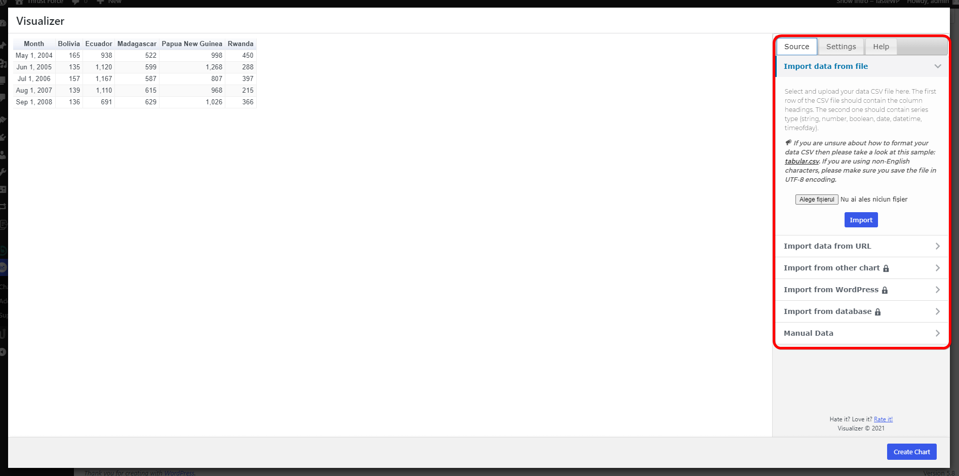 • import data from another chart ( PRO ) - import data from previously created charts.