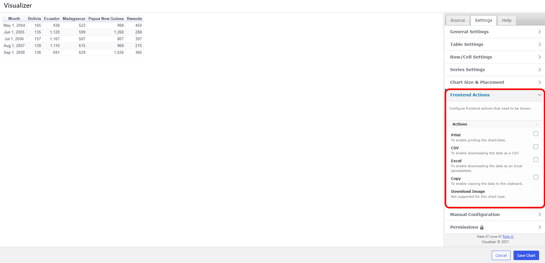 • Manual Data - choose what type of editor to use, to manually edit the chart data.