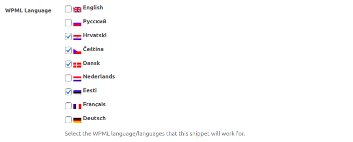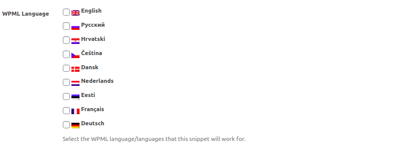 Done. Now the snippet will be displayed only on the required language version of your site. Woody Ad Snippets has conditional logic for displaying snippets, don’t worry, it doesn’t conflict with the language selection.