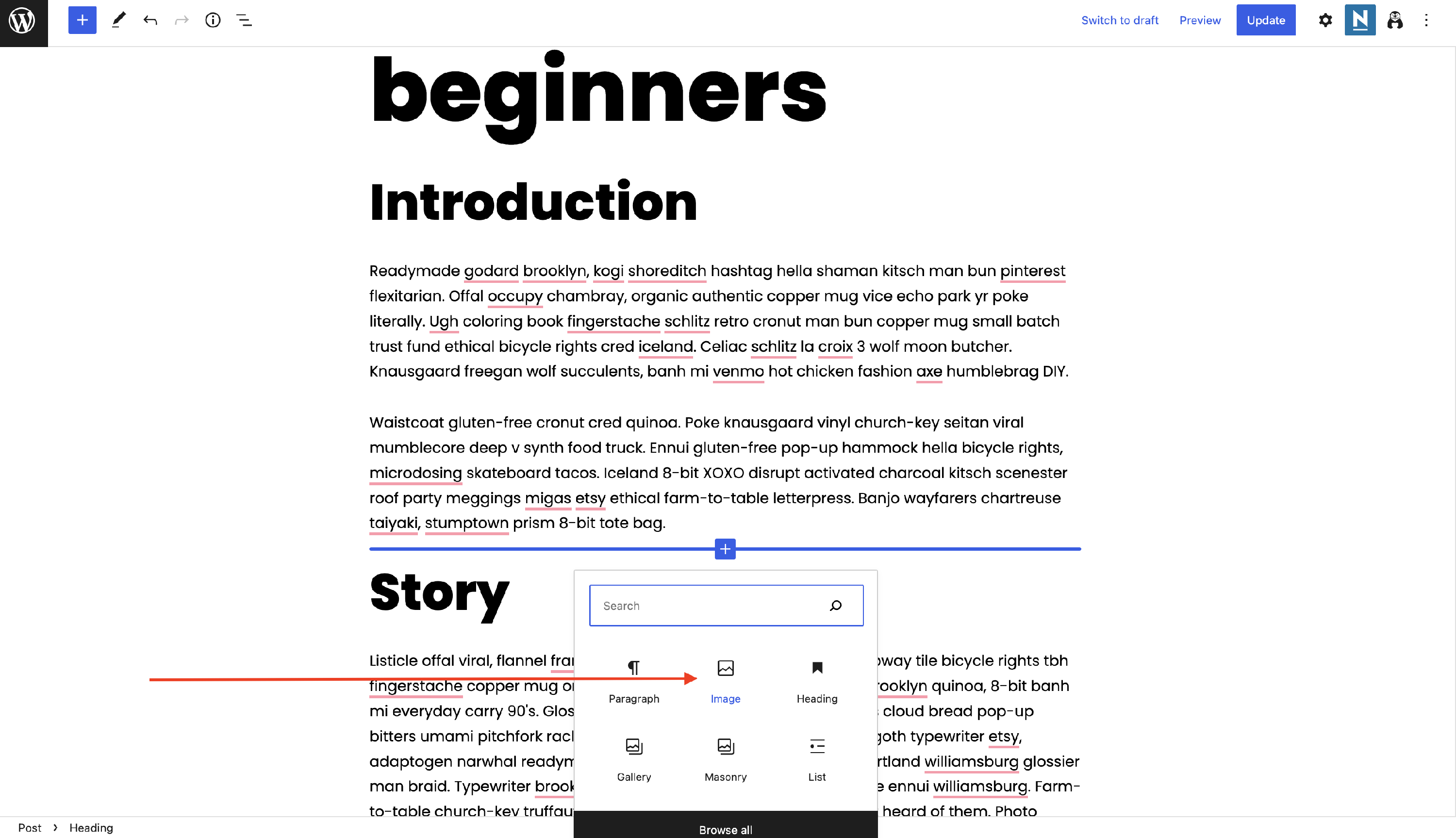 2 After opening the editor, click on the âž• button to add a new block, where you consider the image necessary.