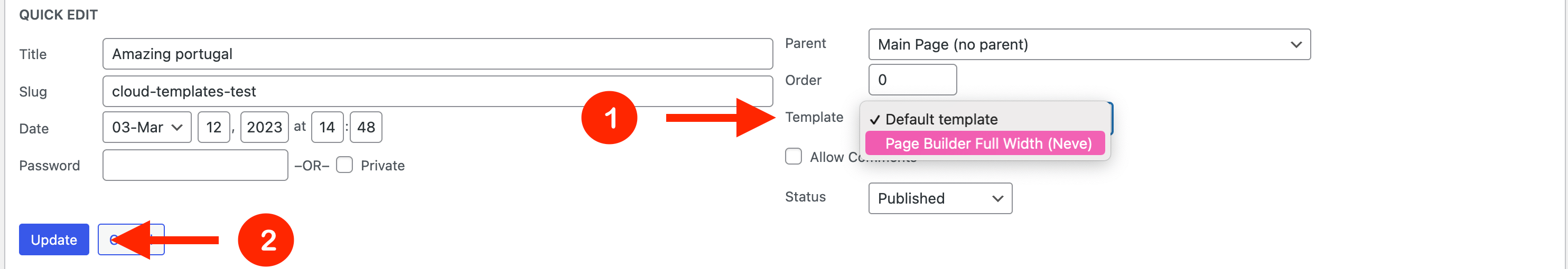 In WordPress, you can change the page template in two ways: