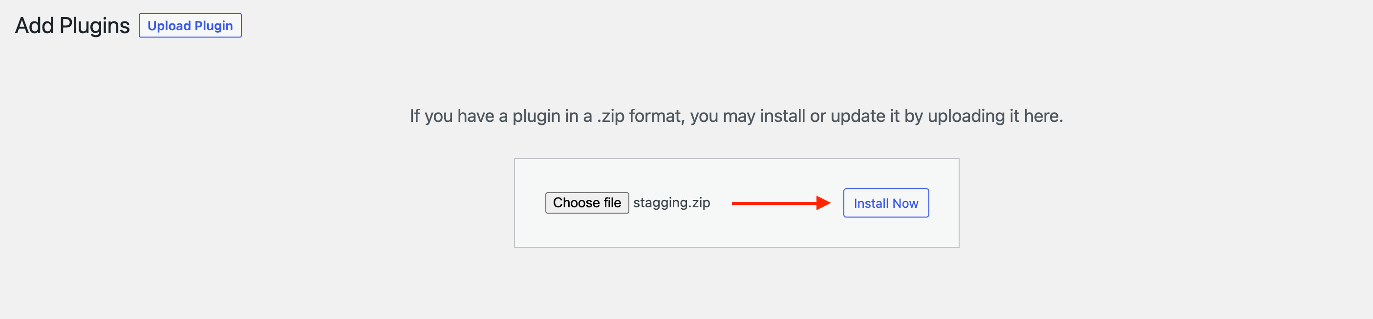 6 Go to Plugins > Add New and upload the site-specific plugin archive.