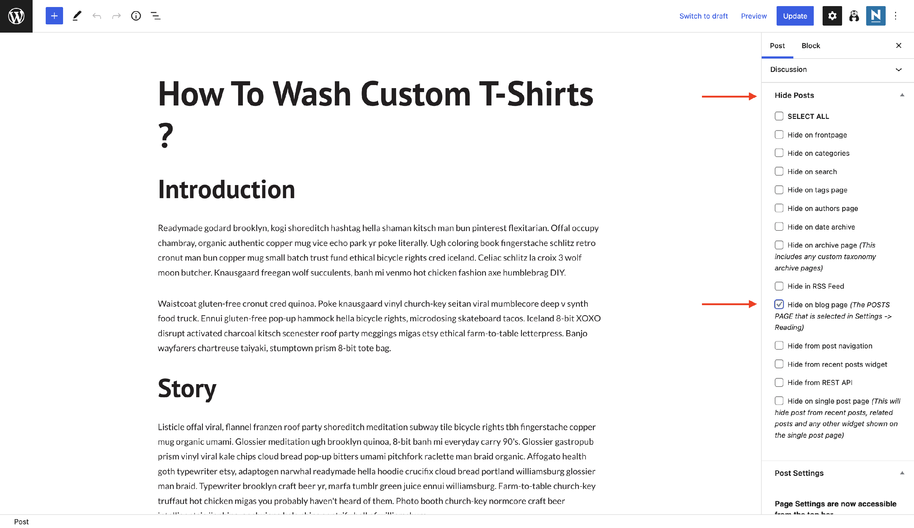 4 In the right sidebar, there is a new accordion called Hide Posts, and you can control where you want to hide the post.