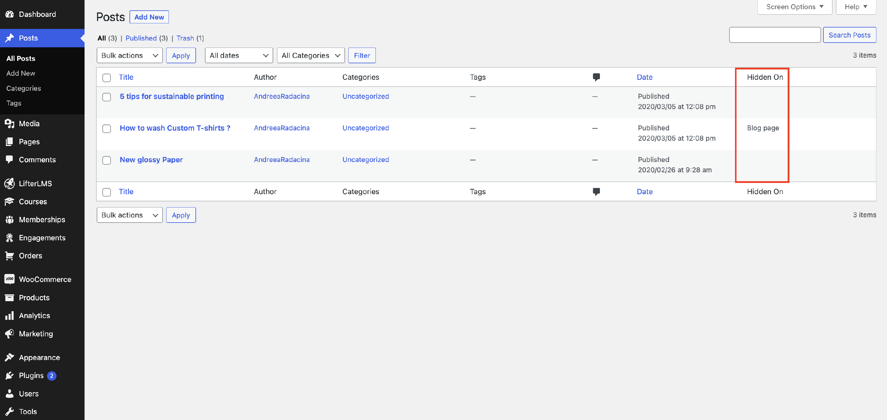 You can also check from the Posts menu due to the new Hidden On column:
