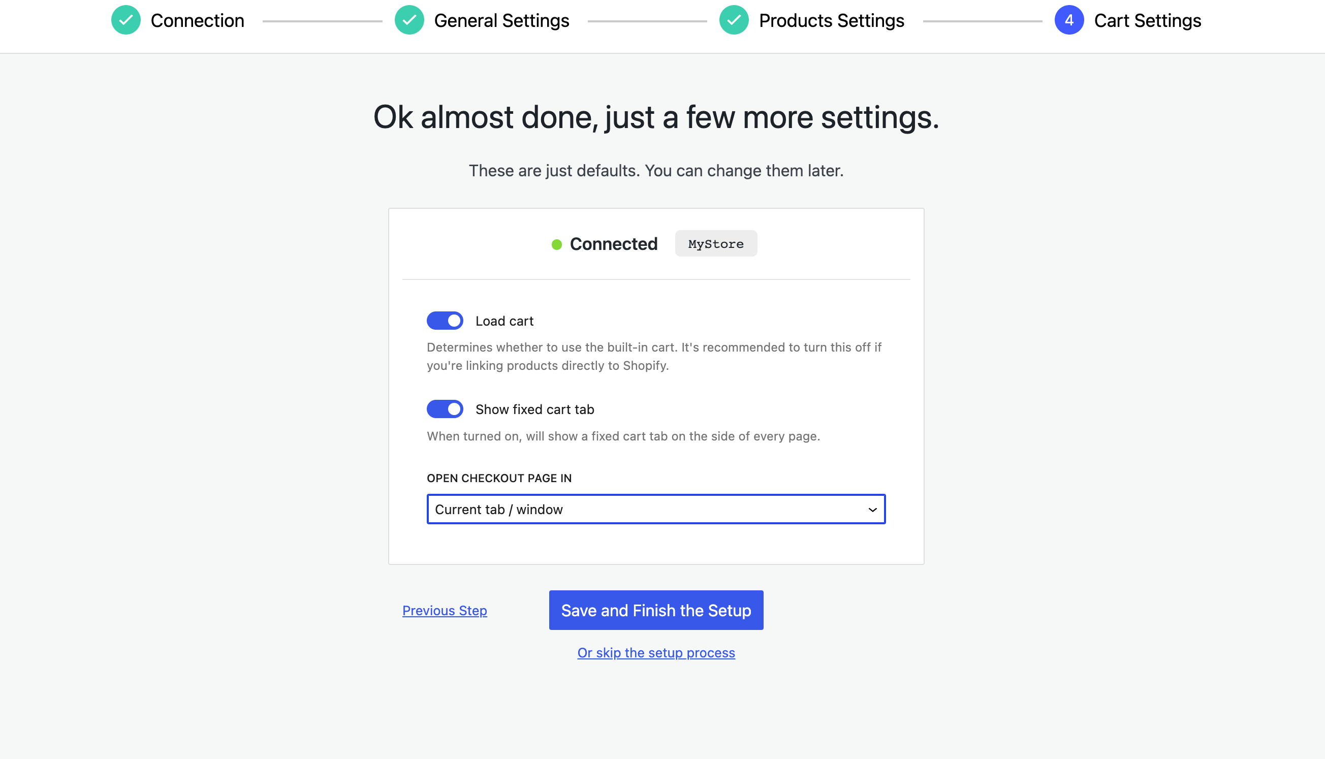 10 In the last step, you can configure the cart, which can be loaded and shown as a fixed cart tab.