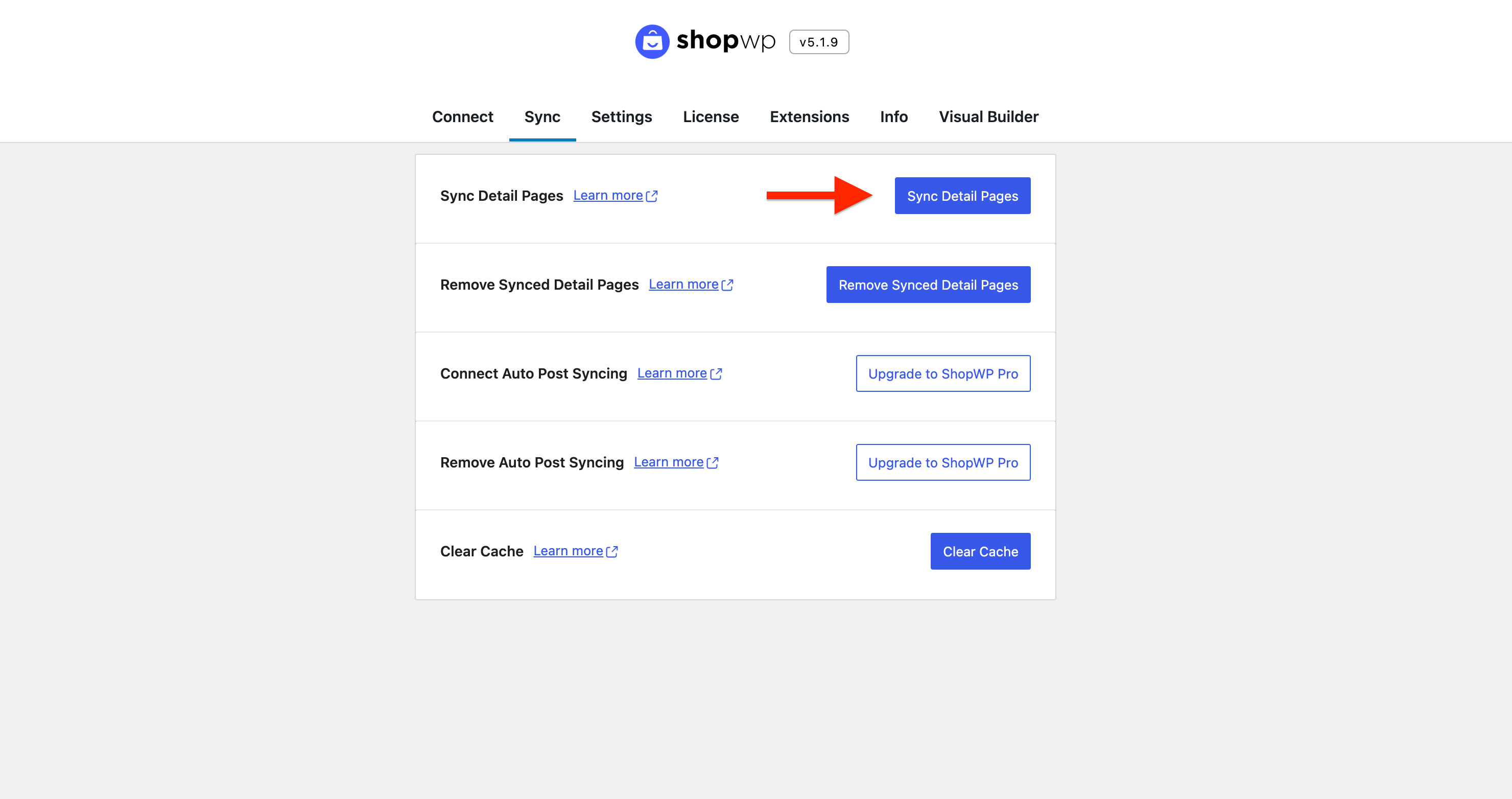 11 After configuring, sync products between WordPress and Shopify by clicking " Sync Detailed Pages" in the Sync tab.