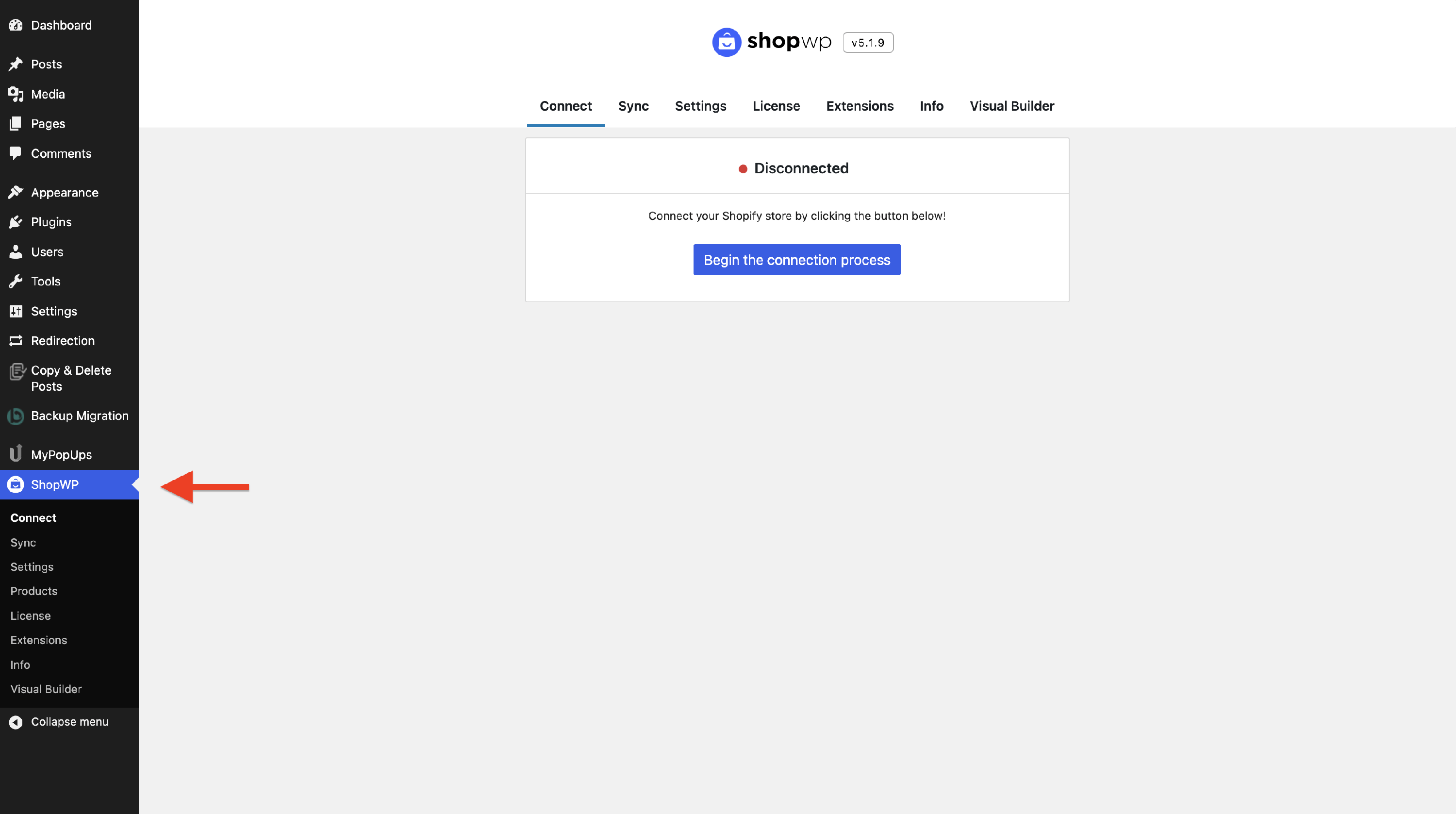 3 Navigate to the ShopWP menu in the Dashboard to start the configuration.