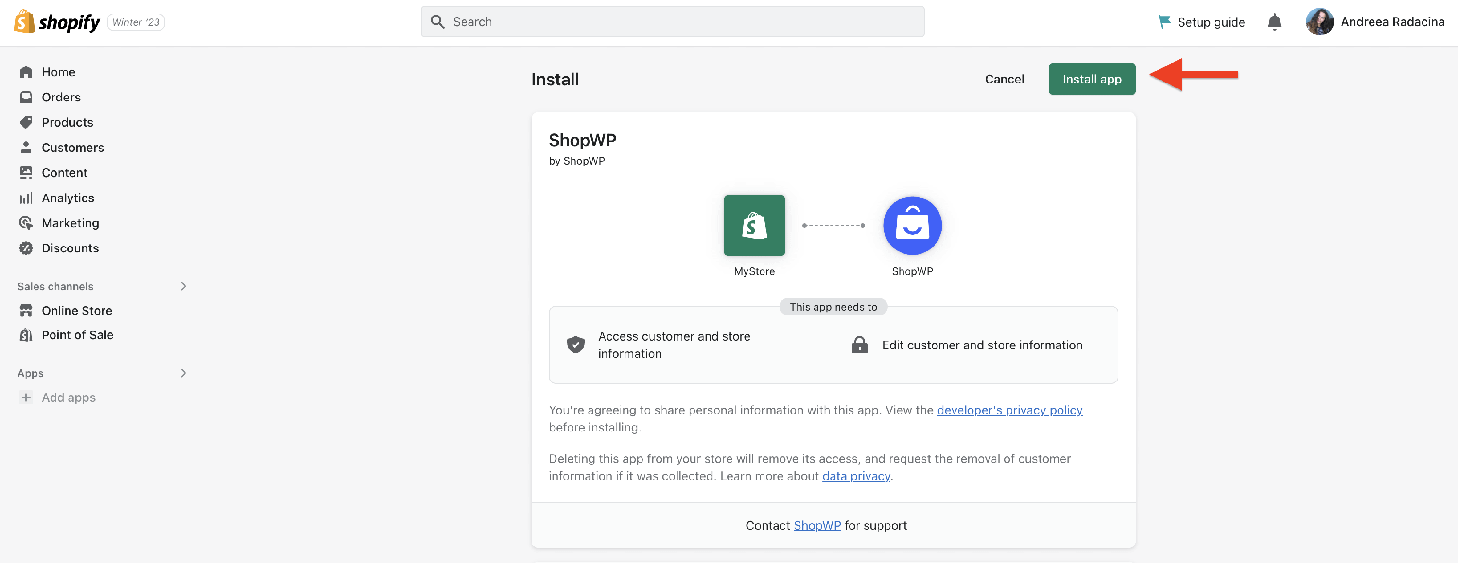 6 The system will redirect you to the Shopify Dashboard, where you should click the Install App button.