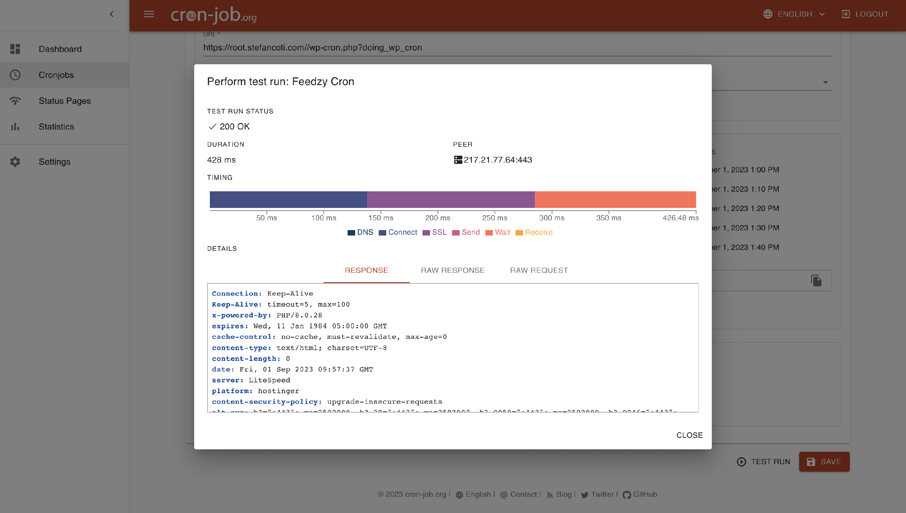 For Title, enter anything you wish; for URL, enter your website domain suffixed with /wp-cron.php?doing_wp_cron.