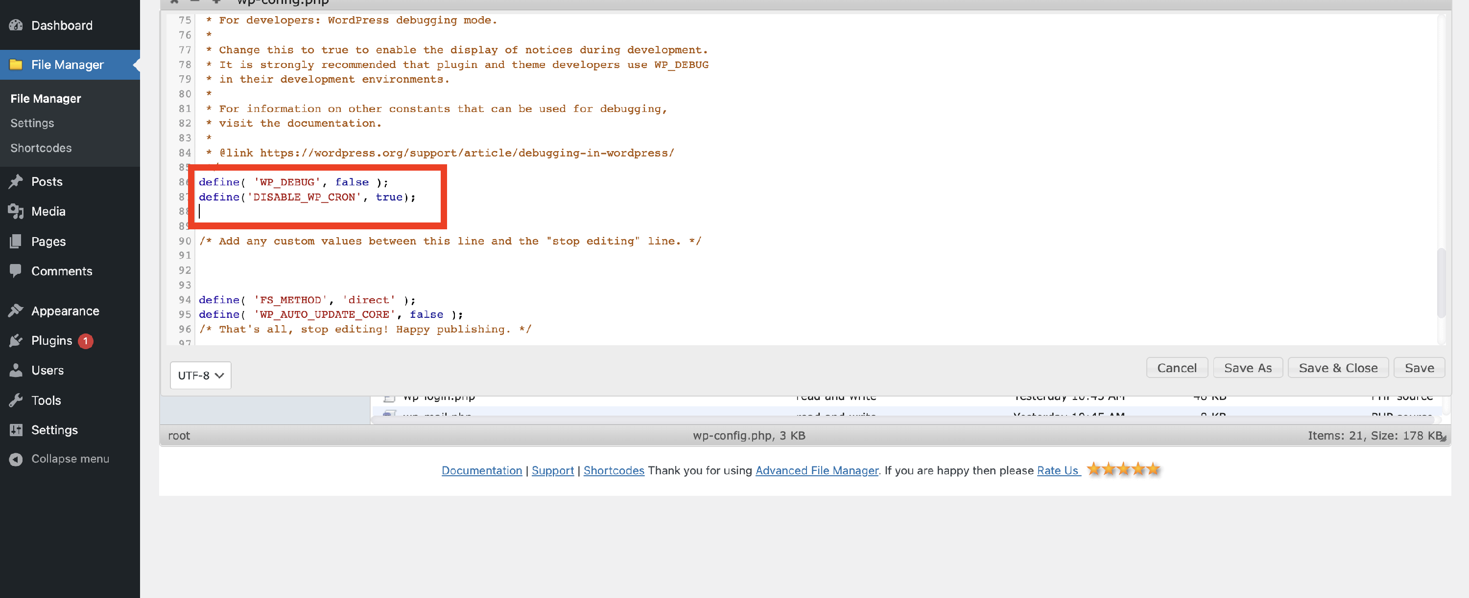📝 Note: If you are not sure how to navigate to this file via your Cpanel or FTP, you can install this plugin, which will allow you to edit the files on your server directly from within WordPress.